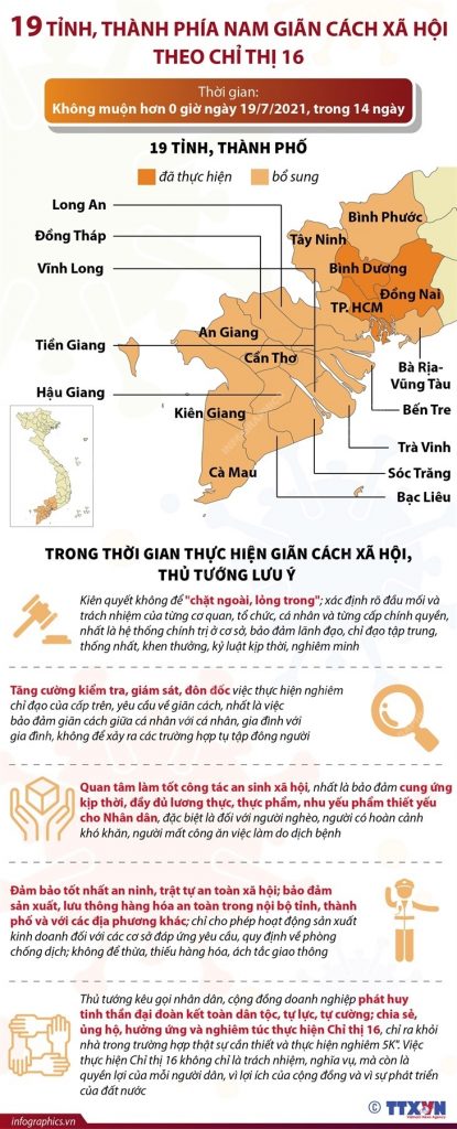 Đó là quyết định mới nhất của Thủ tướng Chính phủ trước diễn biến phức tạp của đại dịch Covid-19 tại các tỉnh, thành phố phía Nam kể từ 0 giờ ngày 19/7/2021.