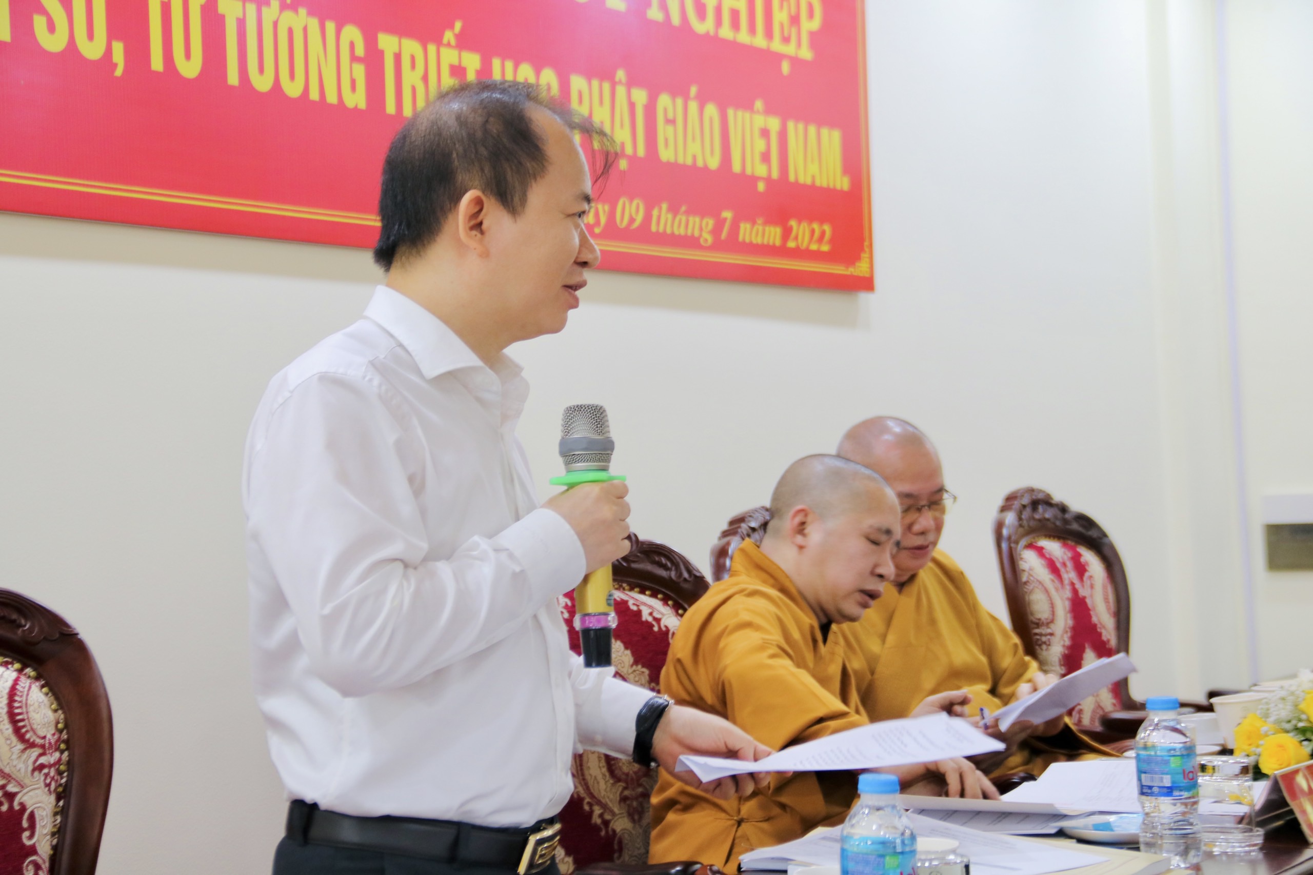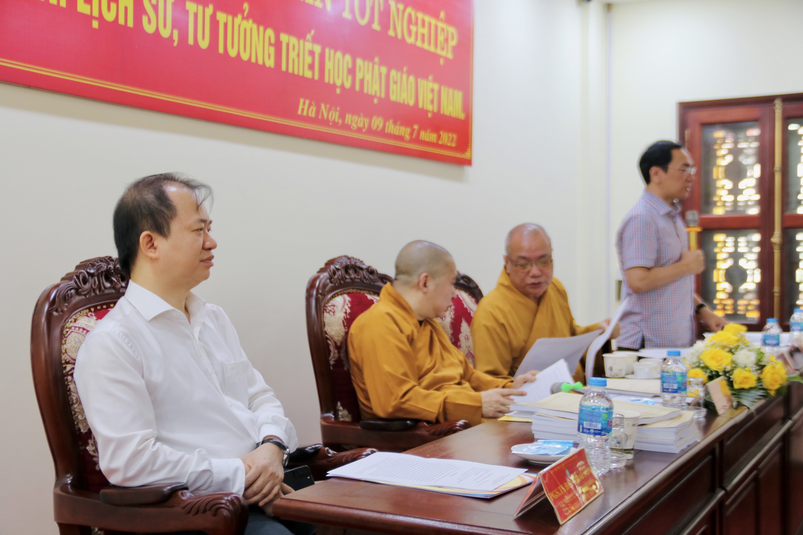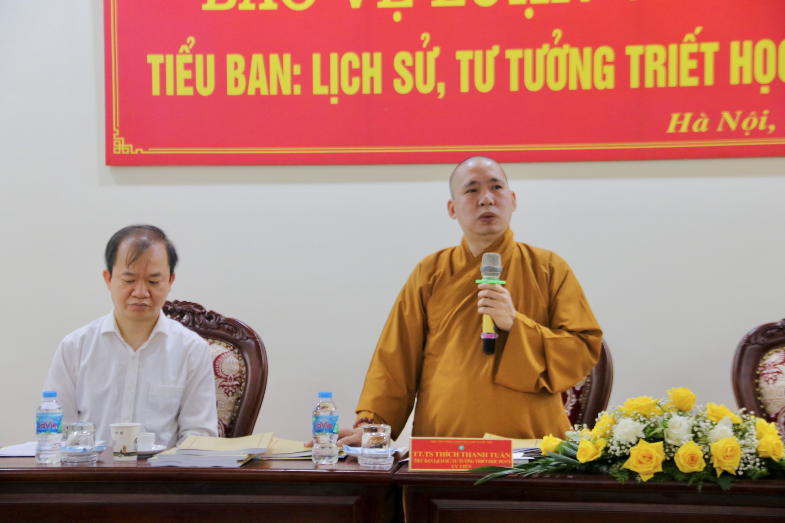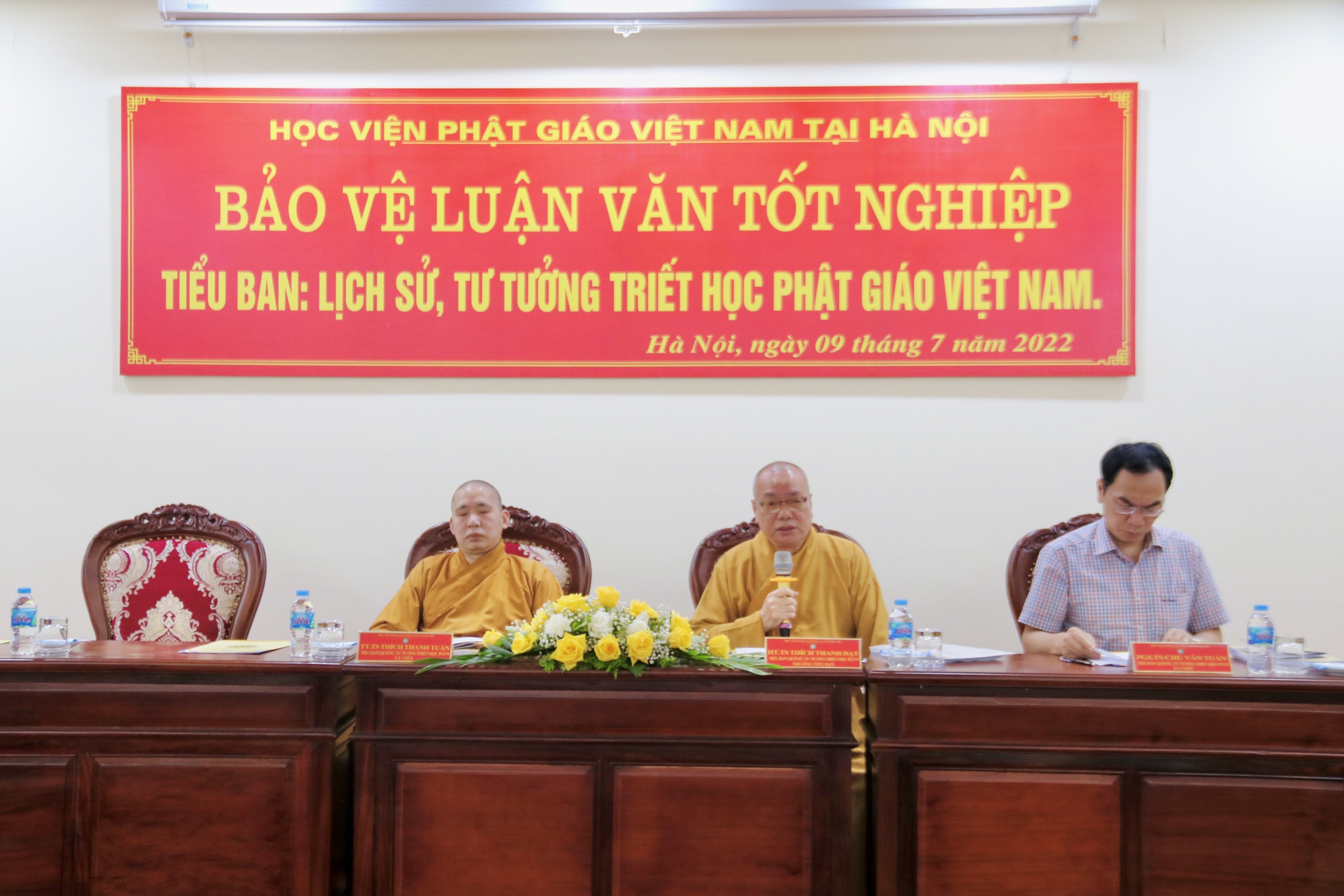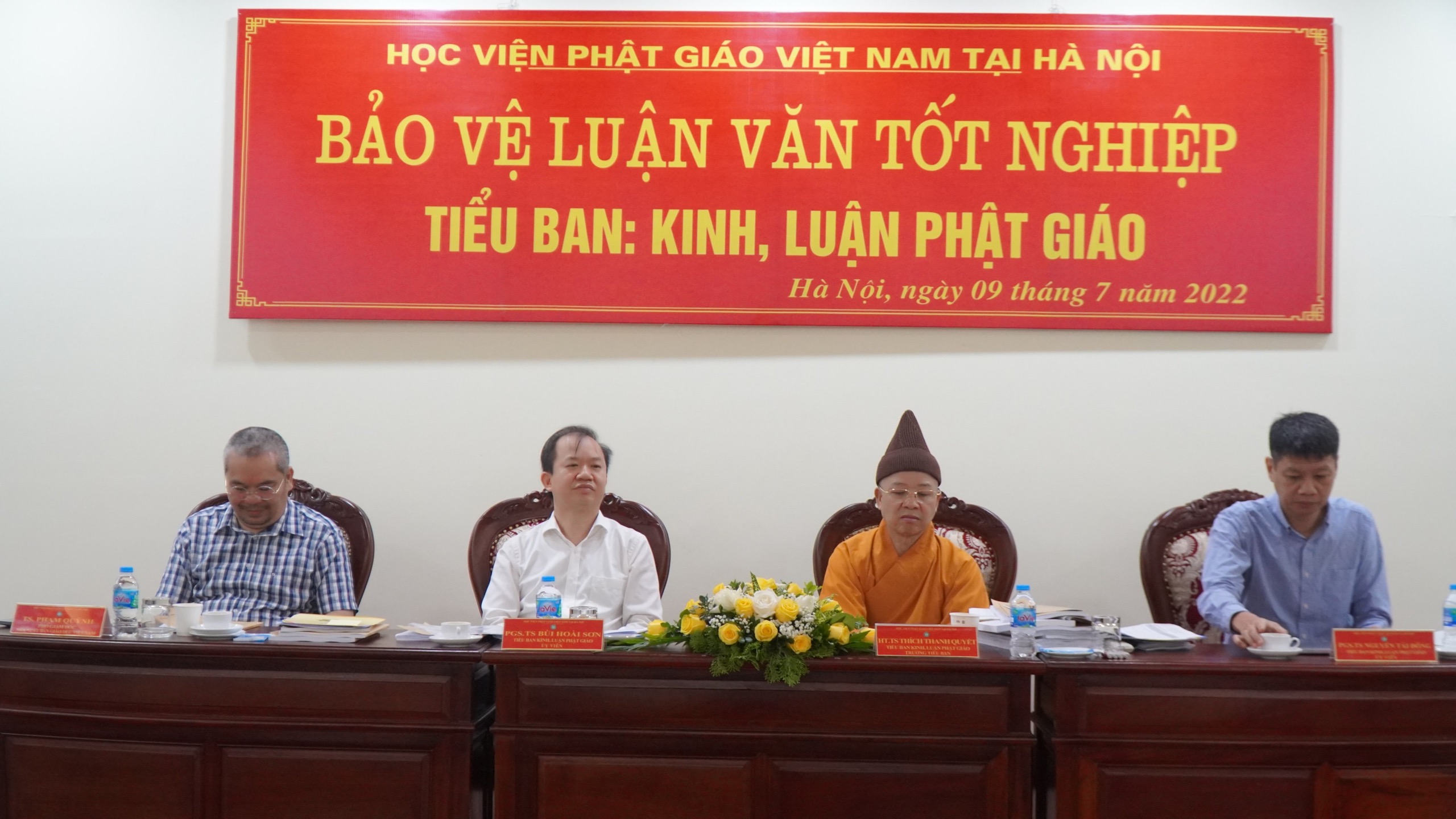Về phía Giáo hội có Chư tôn giáo phẩm lãnh đạo Giáo hội và Học viện như Hòa thượng Tiến sĩ Thích Thanh Quyết – Phó Chủ tịch Hội đồng Trị sự, Viện trưởng, Chủ tịch Hội đồng; Hòa thượng Tiến sĩ Thích Thanh Đạt – Chủ tịch Hội đồng Khoa học Học viện – Phó Chủ tịch Hội đồng; các Thượng tọa Phó viện trưởng: Thích Thanh Tuấn, Thích Minh Quang, Thích Minh Tín… cùng GS. Lương Gia Tĩnh – Uỷ viên Hội đồng Trị sự, Phó viện trưởng…tham gia với vai trò Ủy viên Hội đồng bảo vệ luận văn.