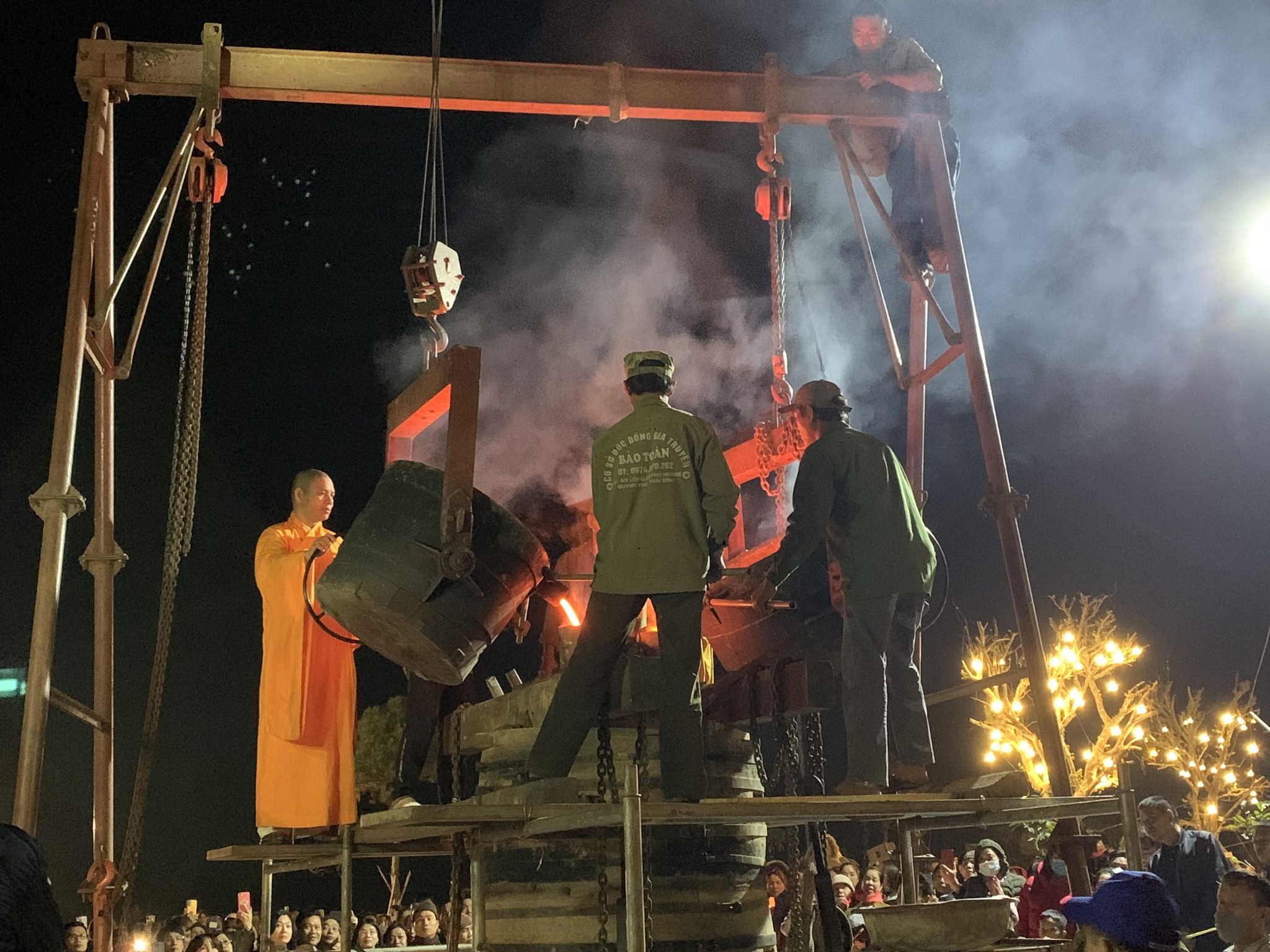 Sau khi an vị tượng Phật, chư tôn đức tiến hành chú nguyện rót đồng đúc Đại hồng chung. Được biết, đại hồng chung đúc có trọng lượng khoảng hơn 1 tấn.