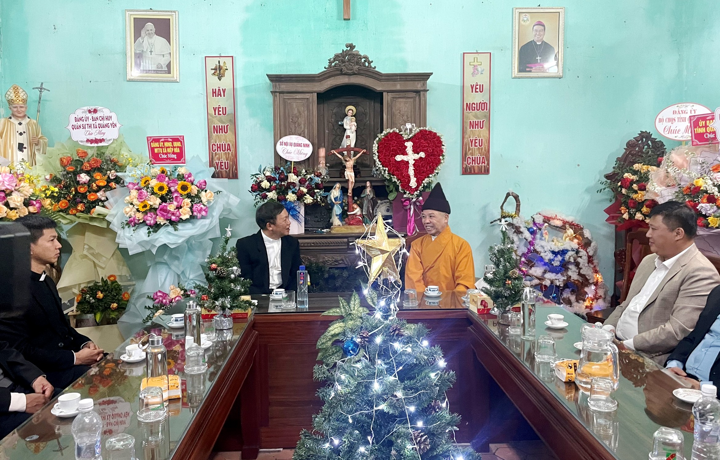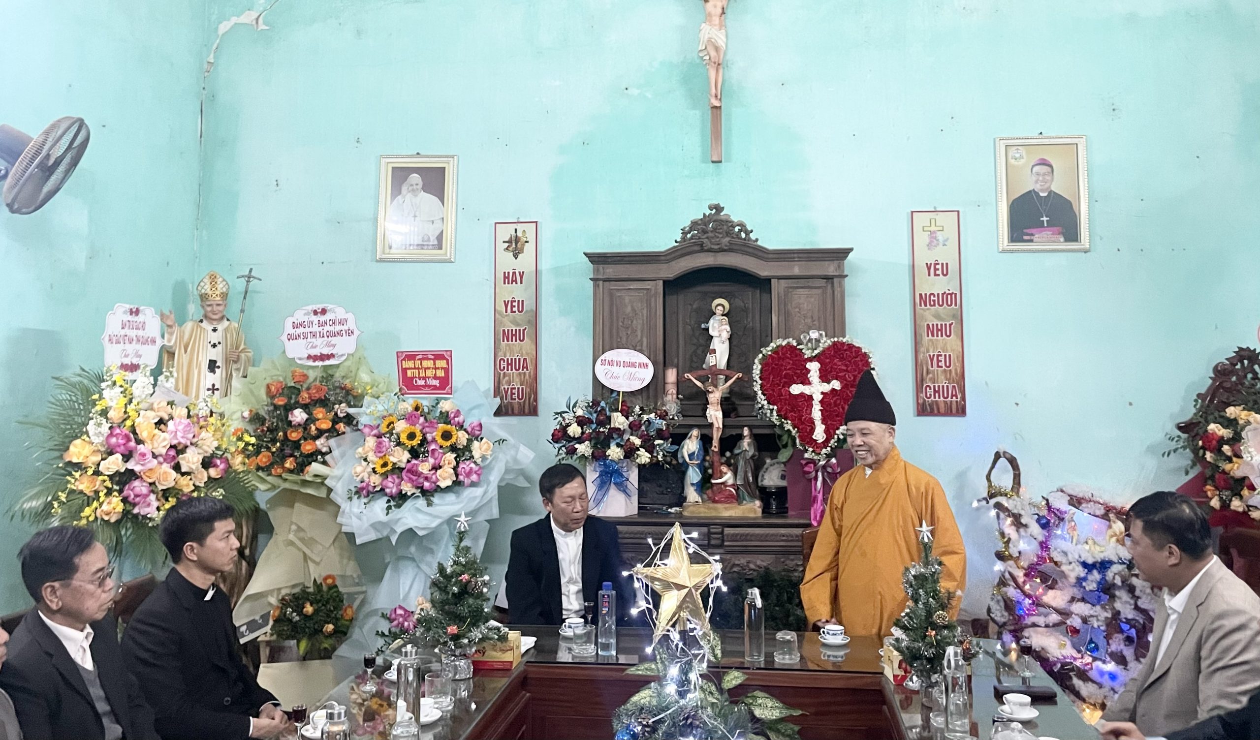 Thay mặt Ban Trị sự GHPGVN tỉnh Quảng Ninh, Hòa thượng Thích Thanh Quyết đã gửi lời thăm hỏi và chúc mừng tới chư vị Linh mục chính xứ, phó xứ, cùng toàn thể giáo dân một mùa Giáng sinh an lành, nhiều niềm vui và hạnh phúc.