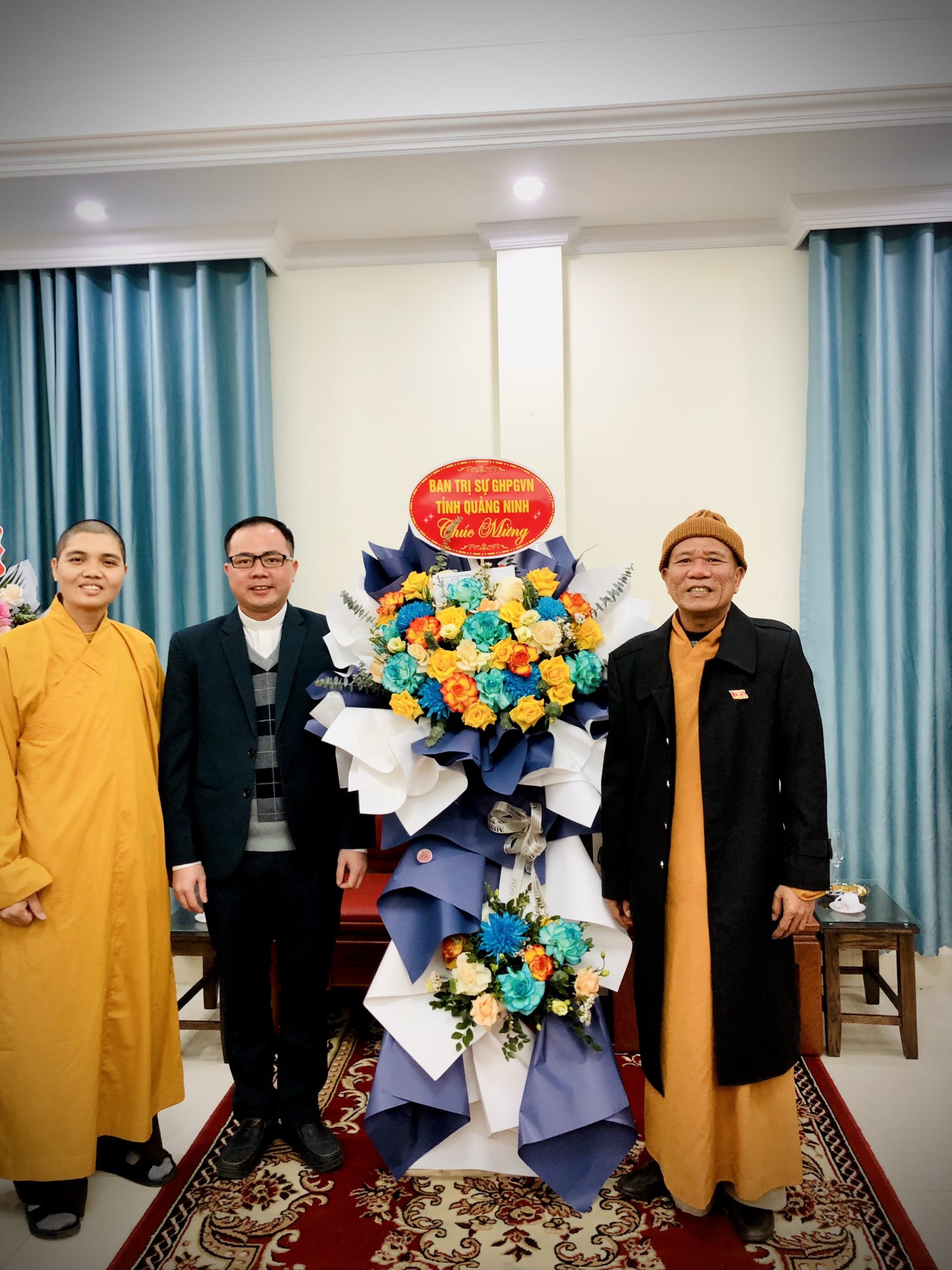 Ban Trị sự GHPGVN tỉnh Quảng Ninh tặng lẵng hoa tươi thắm chúc mừng Giáng sinh. Ảnh: Năng Lượng