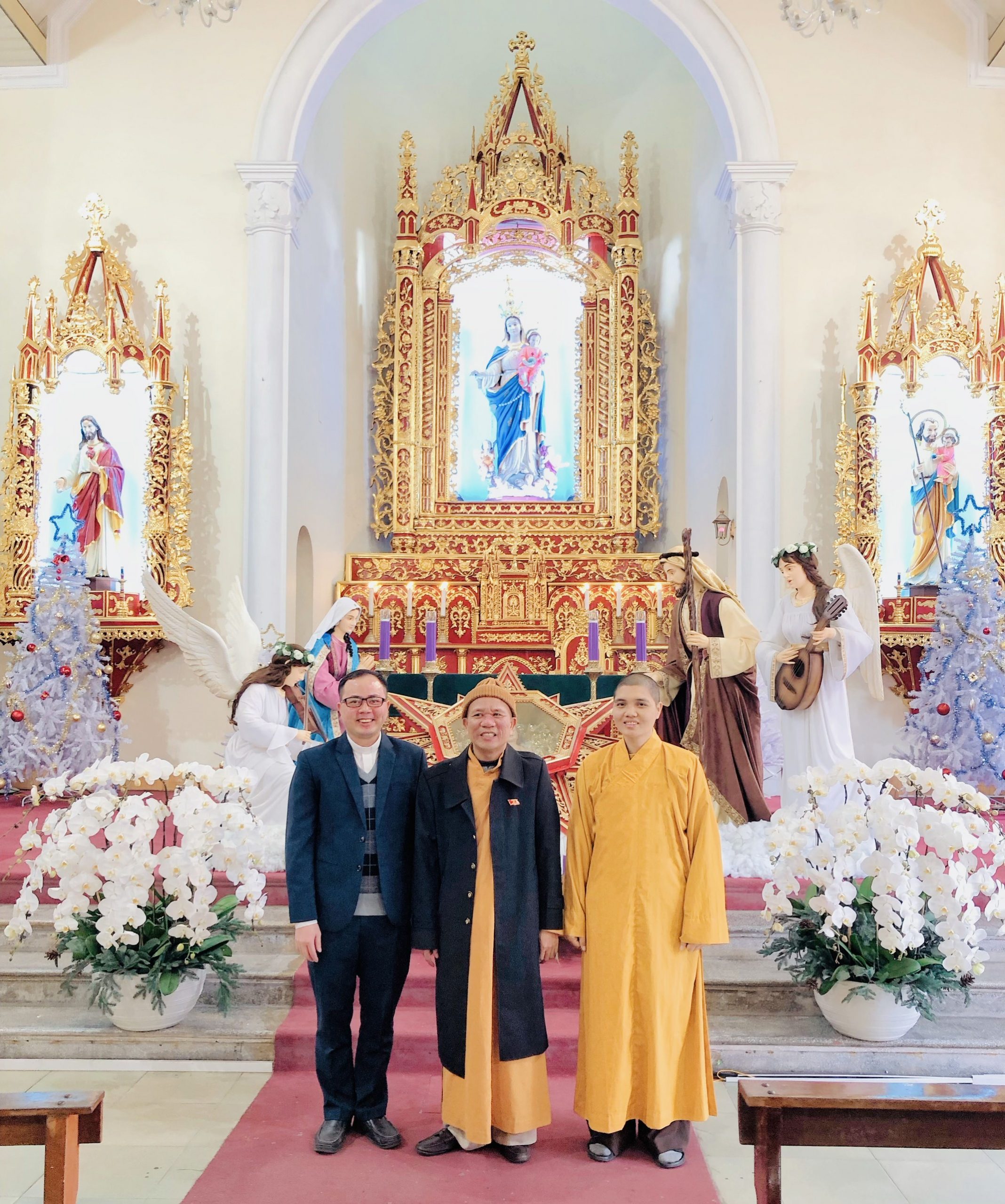 Thượng tọa Thích Hiển Thiện – Phó trưởng Ban Trị sự GHPGVN tỉnh Quảng Ninh, Trưởng Ban Trị sự GHPGVN thành phố Cẩm Phả tới chúc mừng Giáng sinh tại giáo xứ Cẩm Phả.