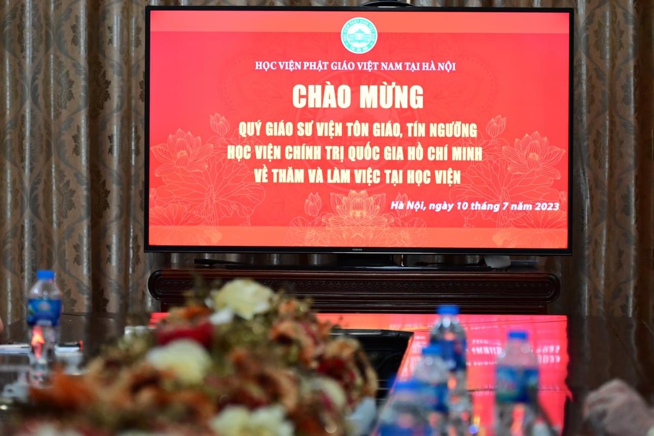 Chiều nay, 10-7, quý Giáo sư, cán bộ, giảng viên Viện Tôn giáo và Tín ngưỡng – Học viện Chính trị Quốc gia Hồ Chí Minh đã có buổi gặp mặt và làm việc tại Học viện để thảo luận hợp tác xây dựng liên kết giáo dục Phật giáo trong tương lai.