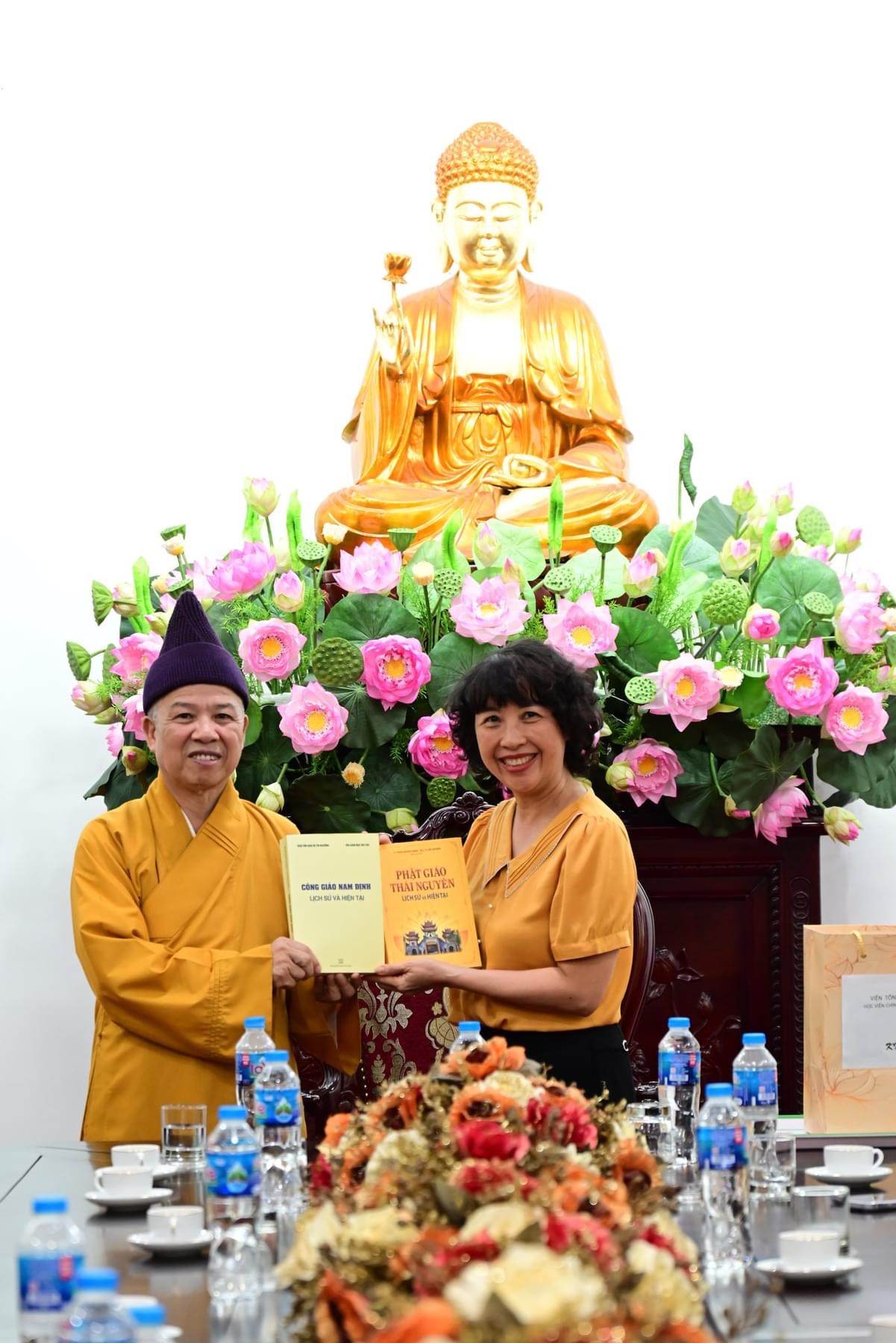 Đại diện Viện Tôn giáo và Tín ngưỡng có PGS.TS Đỗ Lan Hiền – Viện trưởng, PGS.TS Hoàng Thị Lan, TS. Lê Tâm Đắc, đồng Phó Viện trưởng; TS.Bùi Hữu Dược, nguyên Vụ trưởng Vụ Phật giáo, Ban Tôn giáo Chính phủ, Giảng viên cao cấp Học viện Quốc gia HCM; cùng đại diện quý Giáo sư, nhà nghiên cứu, giảng viên của Viện đồng tham dự.