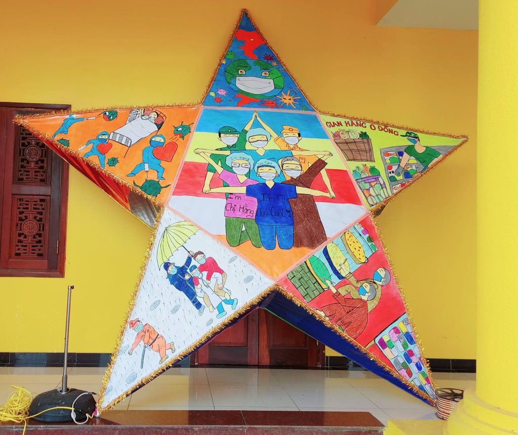 Những bức tranh vẽ của tăng ni sinh ủng hộ phong trào chống dịch covid-19; những chiếc đền lồng ông sao được làm bằng vật liệu thủ công; những bông hoa tự cắm; những chiếc bánh Trung thu tự tay các ni sinh bày biện… đã làm nên một cái Tết Trung thu thật ấn tượng, đặc biệt.