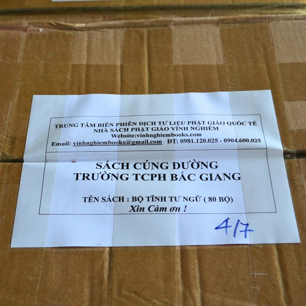 PSO – Ngày 29/9/2024, tại trường Trung cấp Phật học Bắc Giang, Trung tâm Biên phiên dịch Tư liệu Phật giáo Quốc tế – Nhà sách Phật giáo Vĩnh Nghiêm đã mang đến những cuốn sách quý giá để cúng dường sách cho các Tăng Ni sinh đang tu dưỡng và học tập nơi đây. Đây không chỉ là món quà tinh thần mà còn là một hành động thiết thực nhằm góp phần vào sự nghiệp đào tạo nhân tài Phật giáo.