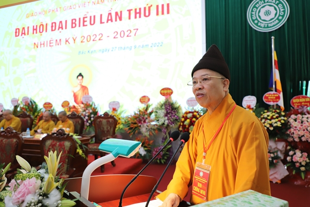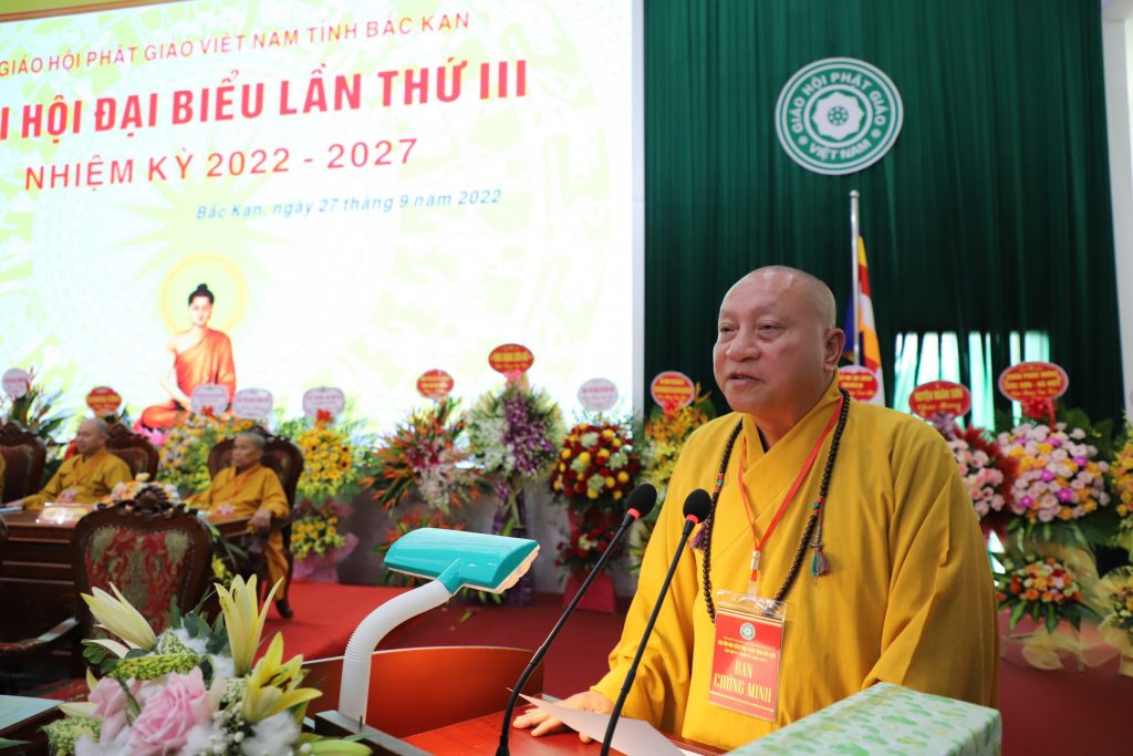 Hòa thượng cho biết, hòa chung không khí tưng bừng của Tăng ni, Phật tử cả nước đang nô nức chào mừng Đại hội đại biểu Phật giáo toàn quốc lần thứ IX, hôm nay, trên quê hương Bắc Kạn xinh đẹp, được sự chấp thuận của HĐTS GHPGVN và UBND tỉnh Bắc Kạn, GHPGVN tỉnh Bắc Kạn trọng thể tổ chức Đại hội đại biểu Phật giáo tỉnh Bắc Kạn lần thứ III, nhiệm kỳ 2022-2027. Đây là một sự kiện trọng đại trong đời sống tinh thần của Tăng ni và đồng bào Phật tử tỉnh nhà. Đại hội có nhiệm vụ tổng kết các công tác Phật sự nhiệm kỳ qua; đánh giá, thảo luận những thành quả đã đạt được, rút ra những kinh nghiệm quý báu từ đó đề ra phương hướng hoạt động Phật sự nhiệm kỳ tới, v.v..