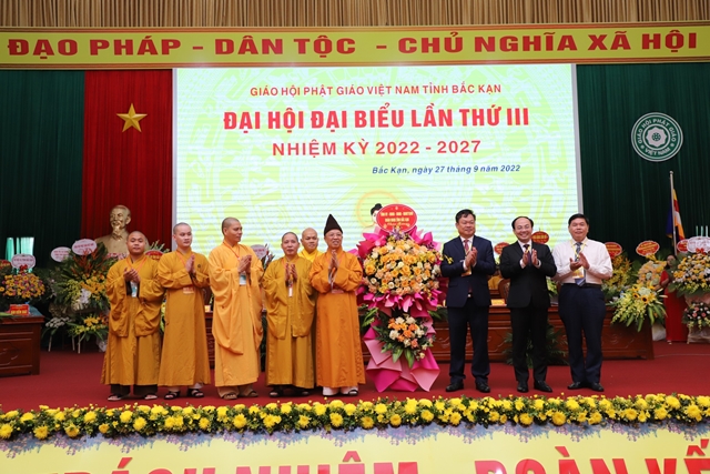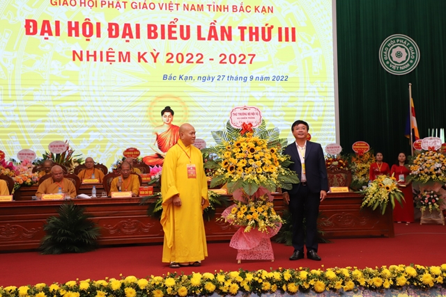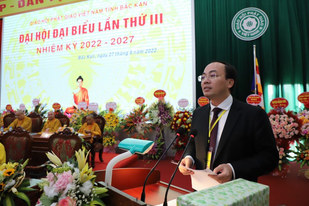 Đại diện lãnh đạo chính quyền, ông Nguyễn Đăng Bình – Phó Bí thư Tỉnh ủy, Chủ tịch UBND tỉnh Bắc Kạn có bài phát biểu chúc mừng Đại hội. Ông biểu dương và đánh giá cao các kết quả đạt được của Phật giáo tỉnh Bắc Kạn trên tinh thần đoàn kết, hòa hợp của tập thể Tăng ni, Phật tử toàn tỉnh; góp phần to lớn vào việc xây dựng khối đại đoàn kết toàn dân tộc, tạo nên những ổn định và phát triển về đời sống kinh tế, văn hóa, xã hội của nhân dân đồng bào các Dân tộc tỉnh Bắc Kạn.