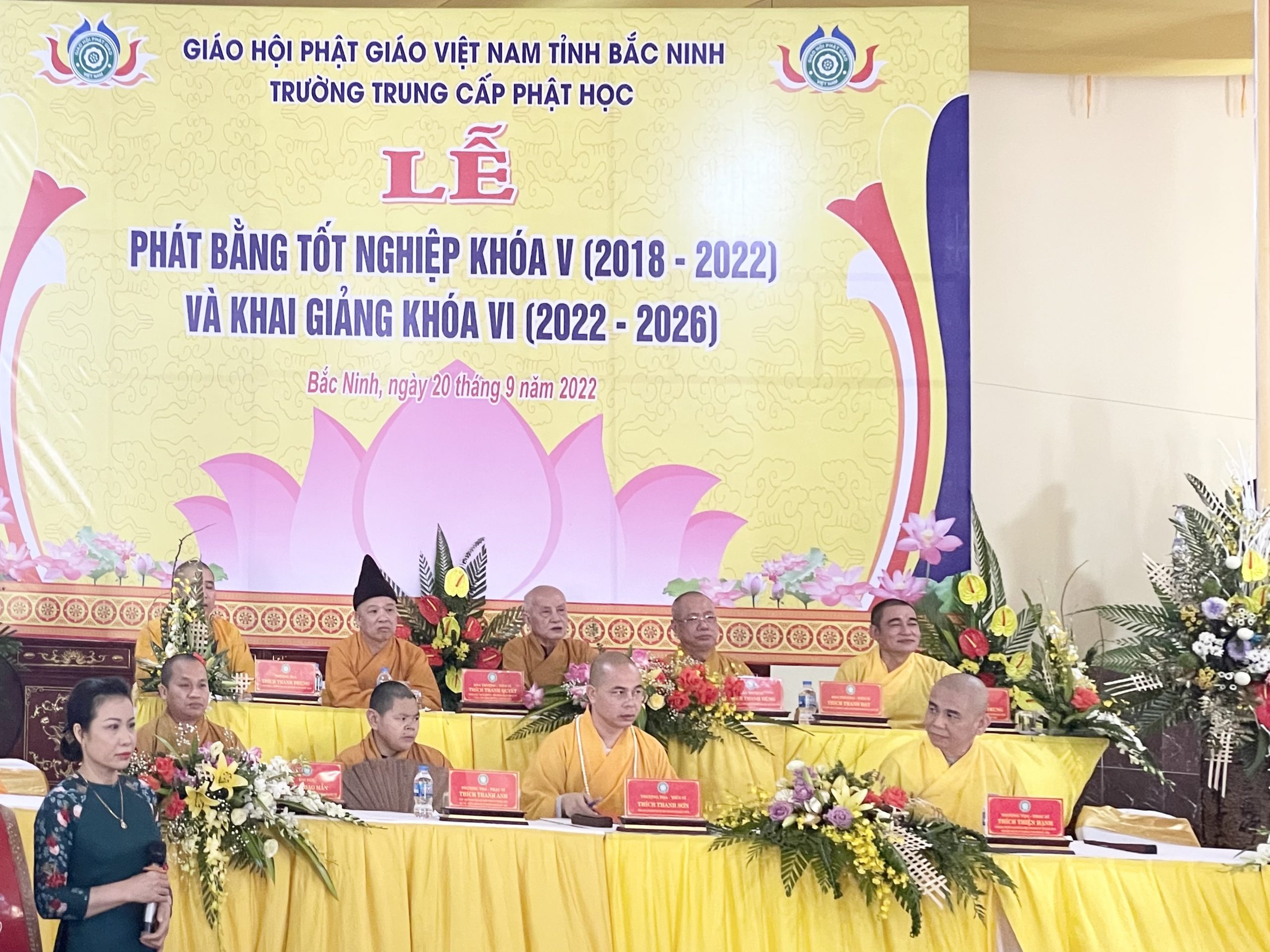 Sáng nay, ngày 20/9/2022, tại chùa Đại Thành (Tp. Bắc Ninh) – Trường trung cấp Phật học tỉnh Bắc Ninh tổ chức Lễ phát bằng tốt nghiệp khoá V (2018- 2022) và Khai giảng khoá VI ( 2022 – 2026).