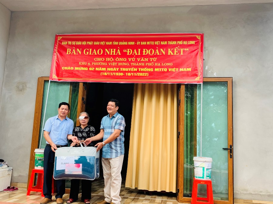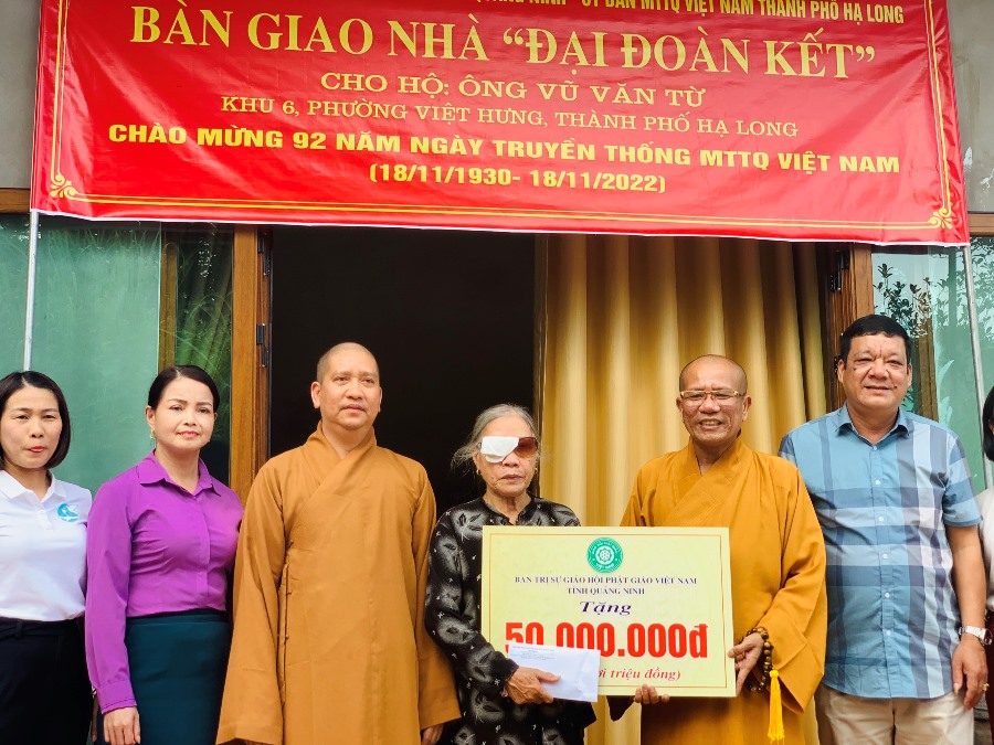 Tại buổi trao nhà đại đoàn kết, Thượng tọa Thích Đạo Hiển – Phó trưởng ban kiêm Chánh Thư kí Ban Trị sự GHPGVN tỉnh Quảng Ninh, Trưởng Ban Trị sự GHPGVN TP. Hạ Long đã động viên gia đình ông Từ, Thượng tọa mong rằng gia đình ông cố gắng vượt lên hoàn cảnh và sống tốt. Thượng tọa cũng hi vọng sẽ có nhiều mạnh thường quân, các nhà hảo tâm sẽ cùng chung tay giúp đỡ để gia đình ông vượt qua khó khăn, nuôi con cái trưởng thành.
