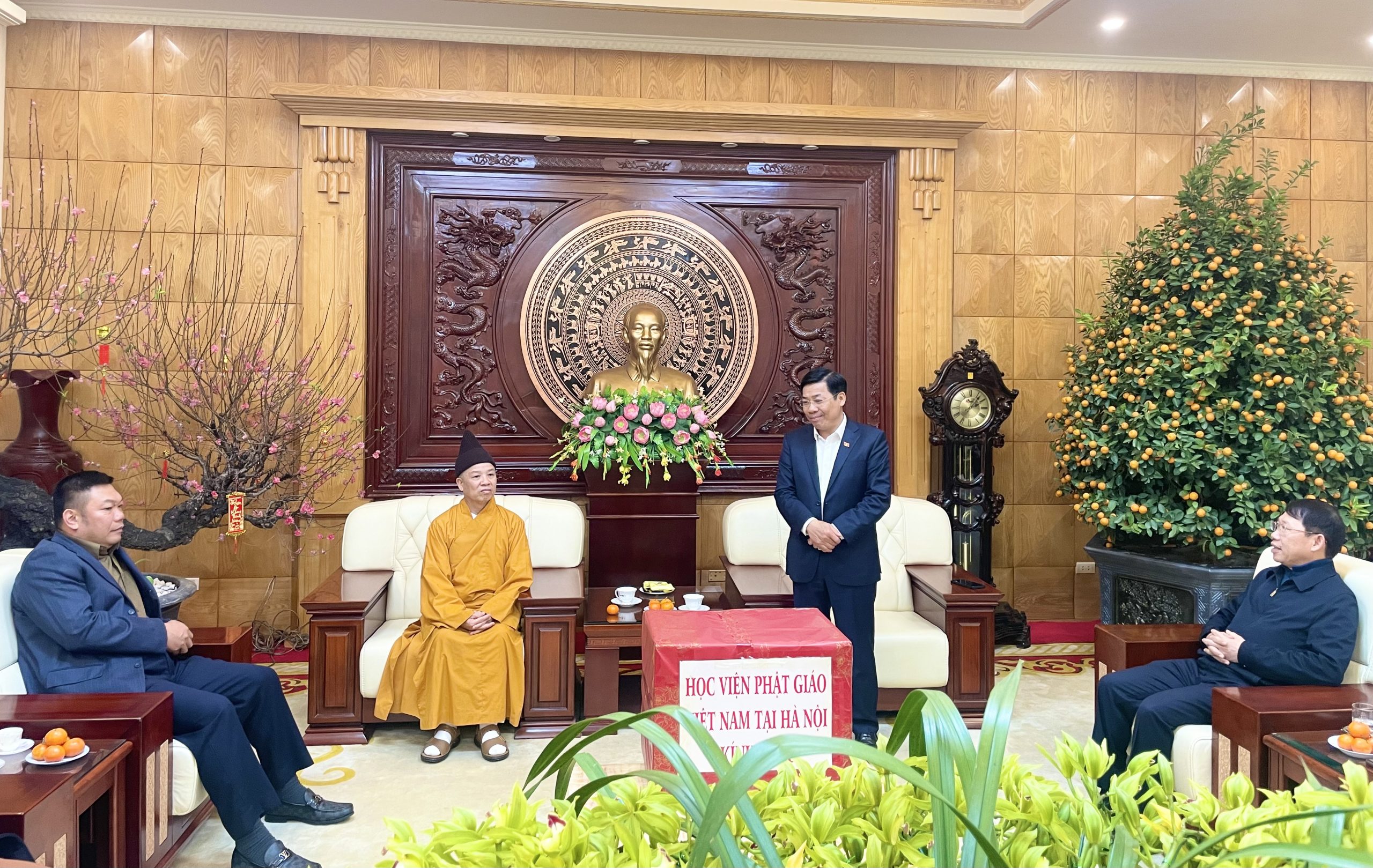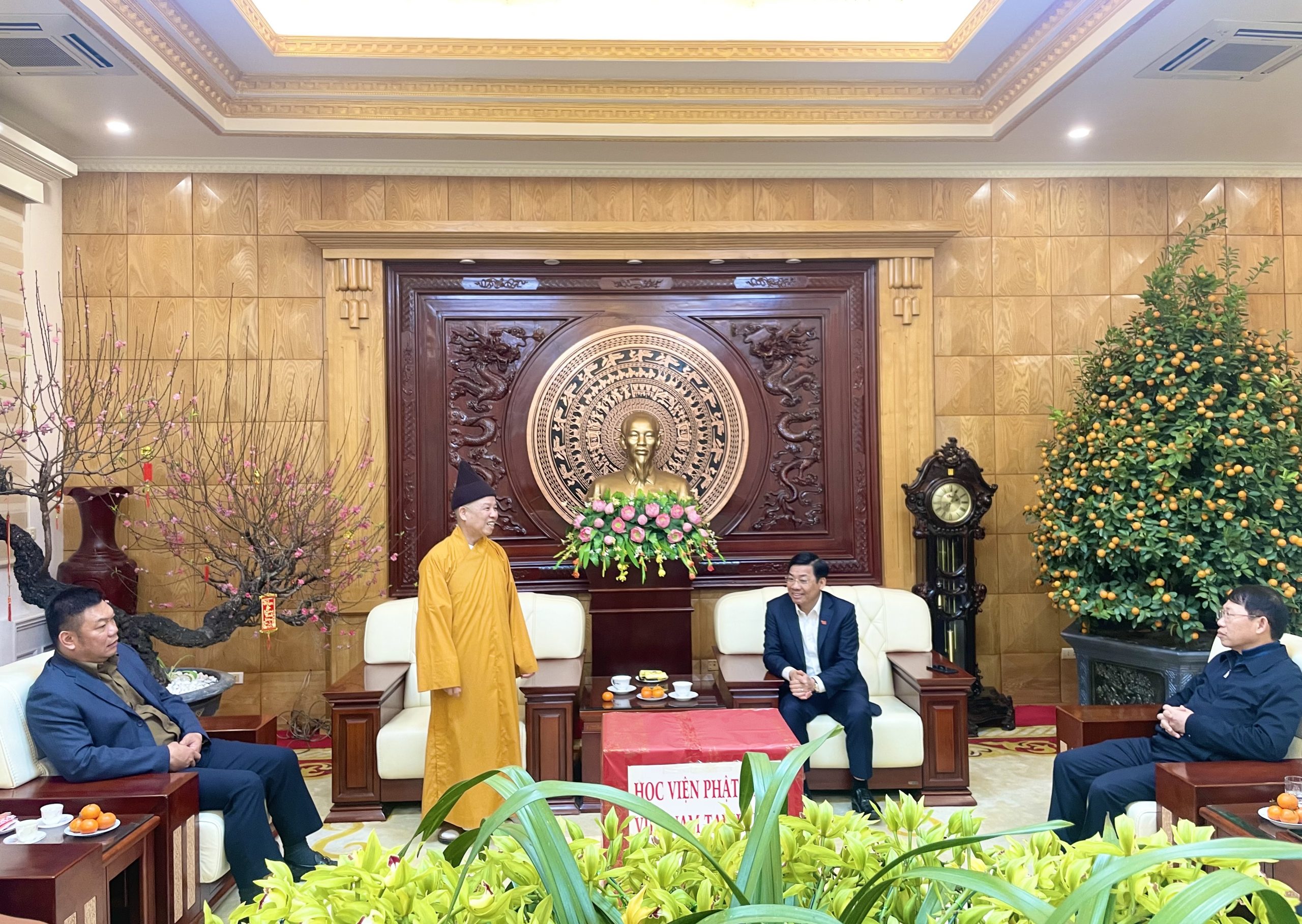 Cùng đón tiếp Hoà thượng tại Tỉnh uỷ còn có ông Lê Ánh Dương – Chủ tịch UBND tỉnh Bắc Giang; lãnh đạo Ban Dân vận Tỉnh ủy, Công an tỉnh, Sở Nội vụ, Văn phòng Tỉnh ủy, Văn phòng UBND tỉnh.