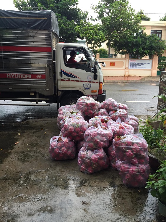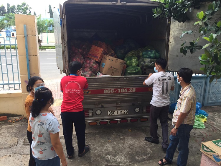 Theo đó, Ban Từ thiện đã trao đến phường Phú Trinh 2 tấn rau quả và thanh long; phường Đức Long hơn 1 tấn rau quả và thanh Long; phường Tiến Lợi, phường Bình Hưng và phường Hưng Long 1,5 tấn thanh Long và rau củ quả, gạo, mì gói…