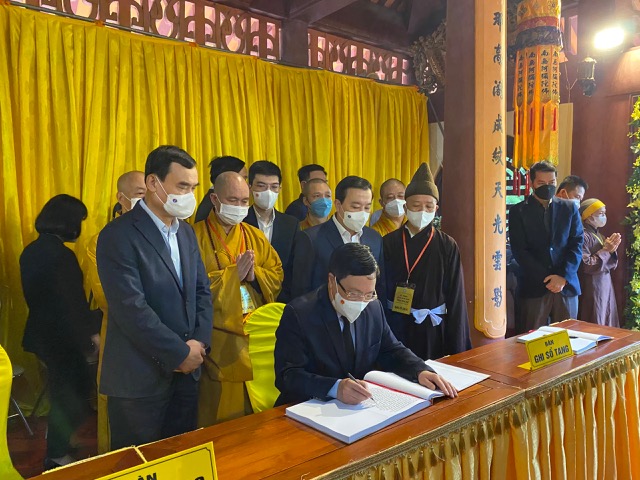 Sáng nay, 22 – 10 – 2021, lãnh đạo Bộ Chính trị, Quốc hội, Chính phủ, các bộ, ban, ngành đã đến tổ đình Viên Minh (chùa Ráng), xã Quang Lãng, huyện Phú Xuyên, TP. Hà Nội viếng tang Đức Pháp chủ GHPGVN – Đại lão Hòa thượng Thích Phổ Tuệ (2017 – 2021).