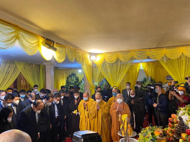 Chư tôn đức Hội đồng Trị sự GHPGVN do Hòa thượng Thích Thiện Nhơn, Chủ tịch Hội đồng Trị sự GHPGVN, Trưởng ban Tổ chức lễ tang; Hòa thượng Thích Thanh Nhiễu, Phó Chủ tịch Thường trực Hội đồng Trị sự, Phó ban Tổ chức tang lễ; Hòa thượng Thích Bảo Nghiêm, Phó Chủ tịch Hội đồng Trị sự, Phó ban Tổ chức lễ tang; chư tôn đức Phó Chủ tịch Hội đồng Trị sự về tổ đình Viên Minh đón tiếp lãnh đạo Bộ Chính trị, Quốc hội, Chính phủ, các bộ, ban, ngành.