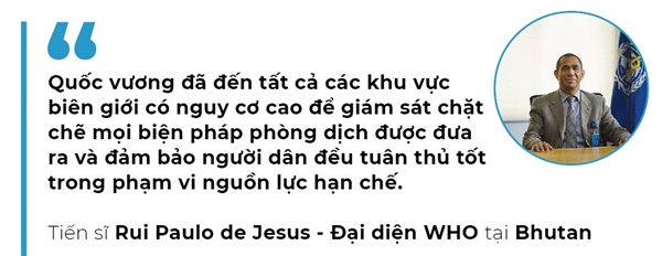 “Khi quốc vương của chúng tôi băng rừng lội suối đến gõ cửa từng nhà để cảnh báo người dân về dịch bệnh, những lời dặn của ông rất được tôn trọng. Sự hiện diện của quốc vương thực sự còn có sức ảnh hưởng hơn nhiều so với việc chỉ ban hành những chỉ đạo công khai trong công tác phòng chống dịch. Sự xuất hiện của ông là sự đảm bảo với người dân rằng họ không đơn độc trong cuộc chiến chống COVID-19”, Thủ tướng Bhutan Lotay Tshering cho hay.