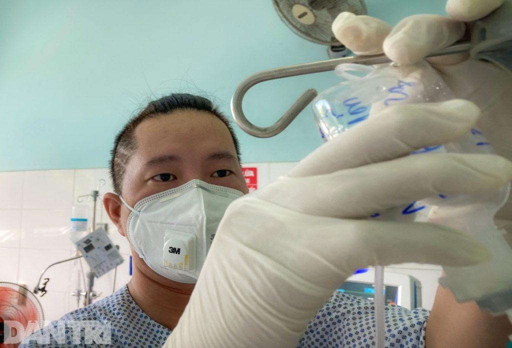 Trường kể, anh và cả gia đình mắc Covid-19, khi mới vào đây anh phải thở máy, suy hô hấp nặng và phổi bị trắng. Sau gần một tháng điều trị, anh đã hồi phục sức khỏe dần, cai được thở oxy nhưng hiện vẫn chưa chữa khỏi Covid-19. Và từ thời điểm đó, tất cả những người bệnh ở khoa nhiễm 1 đều biết đến Trường như một “điều dưỡng” đặc biệt.