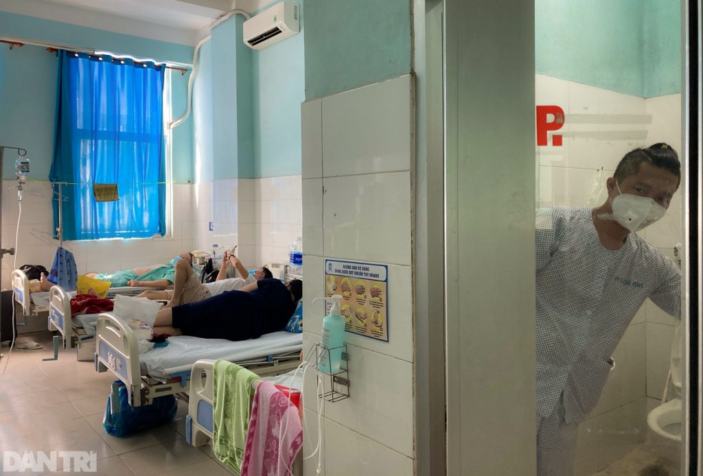 8h30 sáng, bước vào bên trong khoa nhiễm 1 – nơi đang điều trị cho gần 80 bệnh nhân mắc Covid-19 thuộc nhóm nặng, chỉ sau khoa Hồi sức tích cực. Một bầu không khẩn trương từ hành lang cho tới các phòng bệnh, tiếng lạch cạch của xe đẩy vang dọc hành lang, các nhân viên y tế thay nhau đẩy bệnh nhân ra vào, thay bình ô xy ở các phòng.