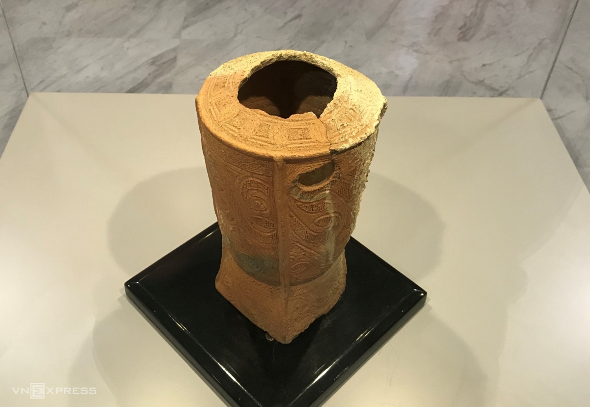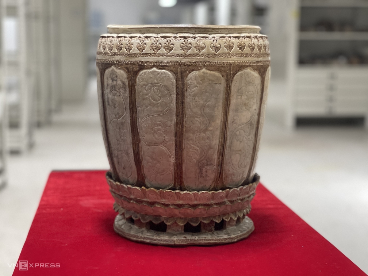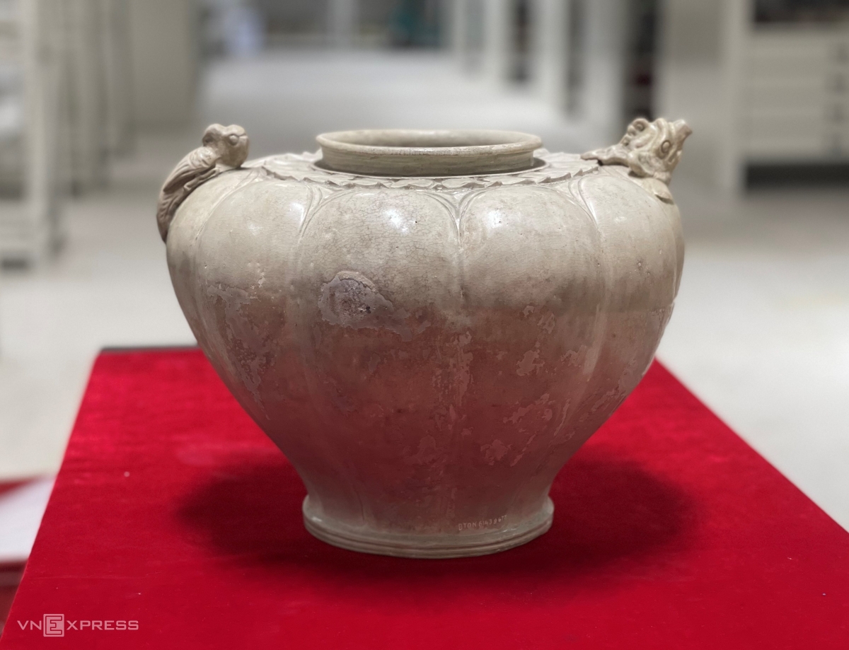 Thạp gốm hoa nâu có niên đại thời Lý, thế kỷ 11 – 12; tổng trọng lượng 9,3 kg, cao 35,5 cm.