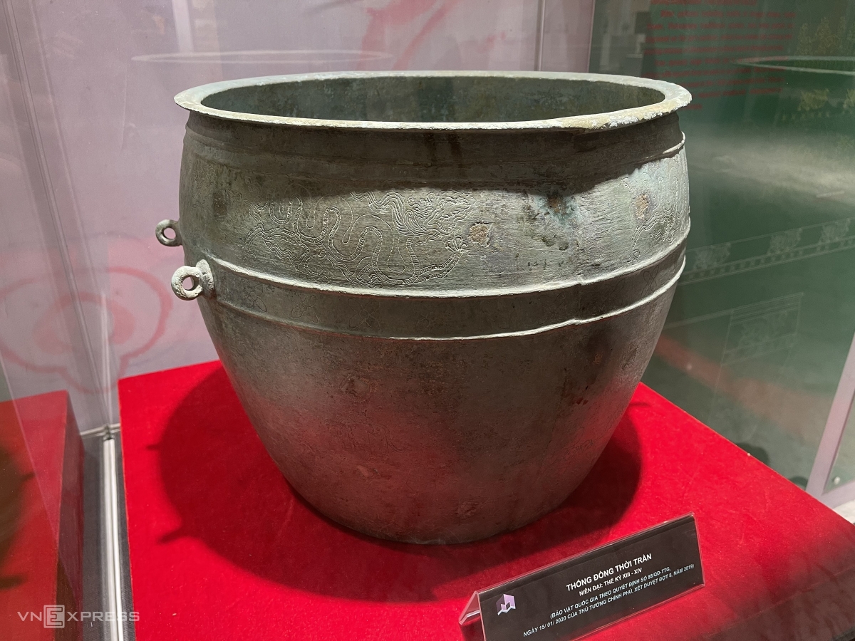 Thống đồng có niên đại thời Trần, thế kỷ 13-14. Trên tổng thể, Thống còn nguyên vẹn cả hình dáng và hoa văn. Thống nặng 15 kg, cao 37 cm, đường kính miệng 42,5 – 43,5 cm, đường kính thân 45 cm, đường kính đáy 37,5 cm.