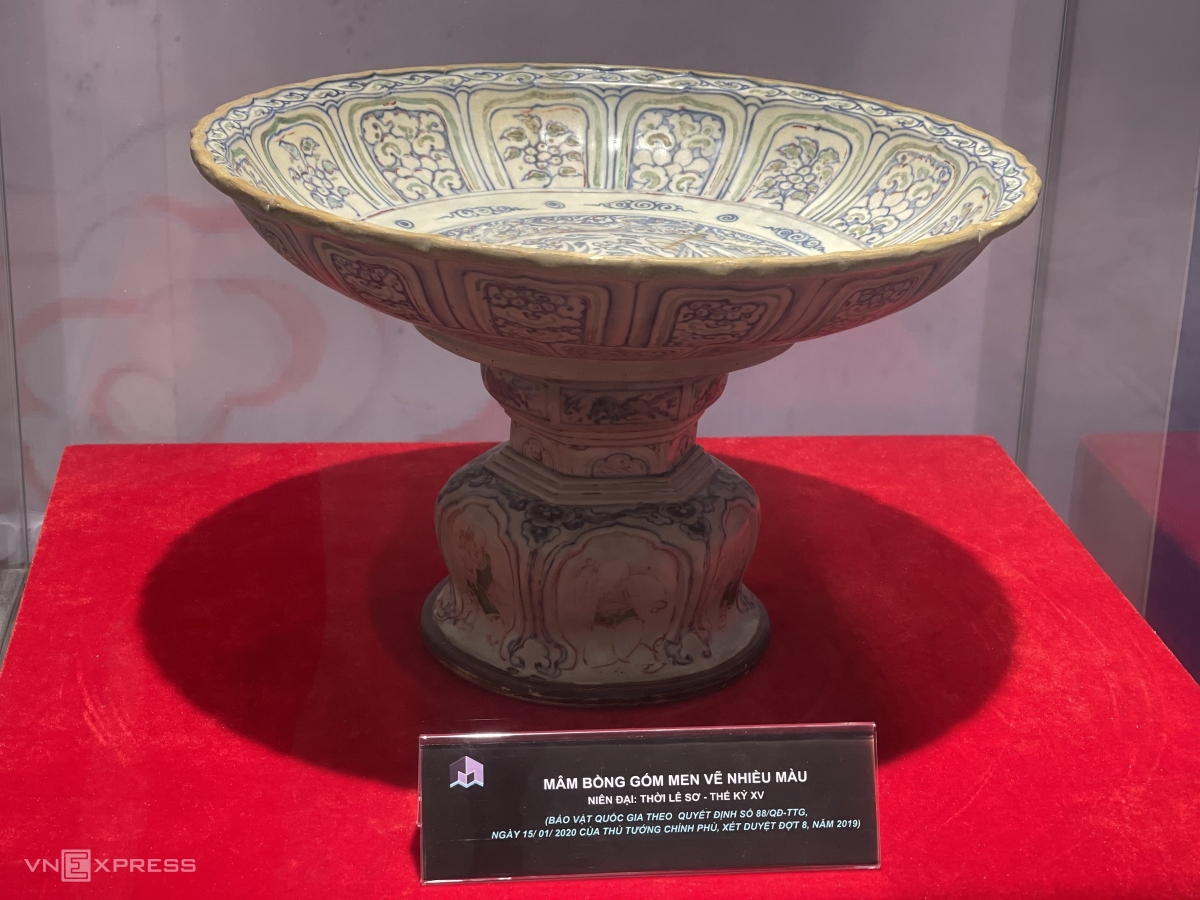 Mâm bồng gốm men vẽ nhiều màu có niên đại thời Lê sơ, thế kỷ 15.