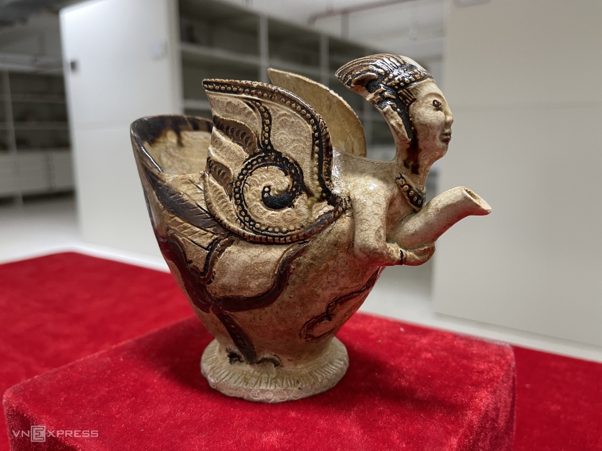 Bình gốm hoa nâu Kinnari có niên đại thời Lý, thế kỷ 11-12.