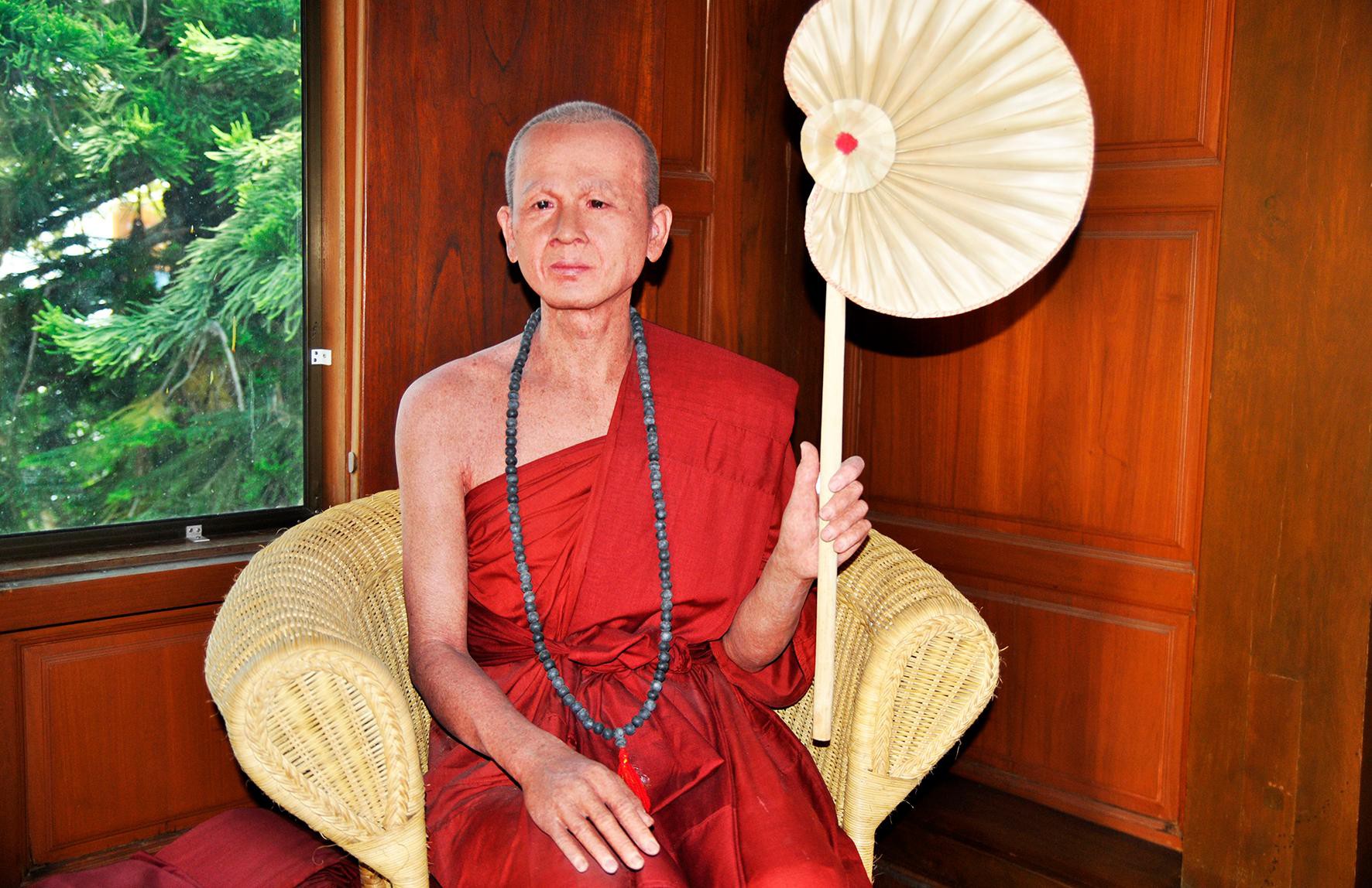 Đi sâu vào bên trong ngôi chùa, chúng tôi thấy nhiều bức tượng. Ấn tượng nhất là bức tượng Phật tổ Như Lai bằng đồng lớn được đặt chính giữa điện. Tượng sáp về các nhà sư cũng khiến nhiều kinh ngạc bởi giống hệt người thật.