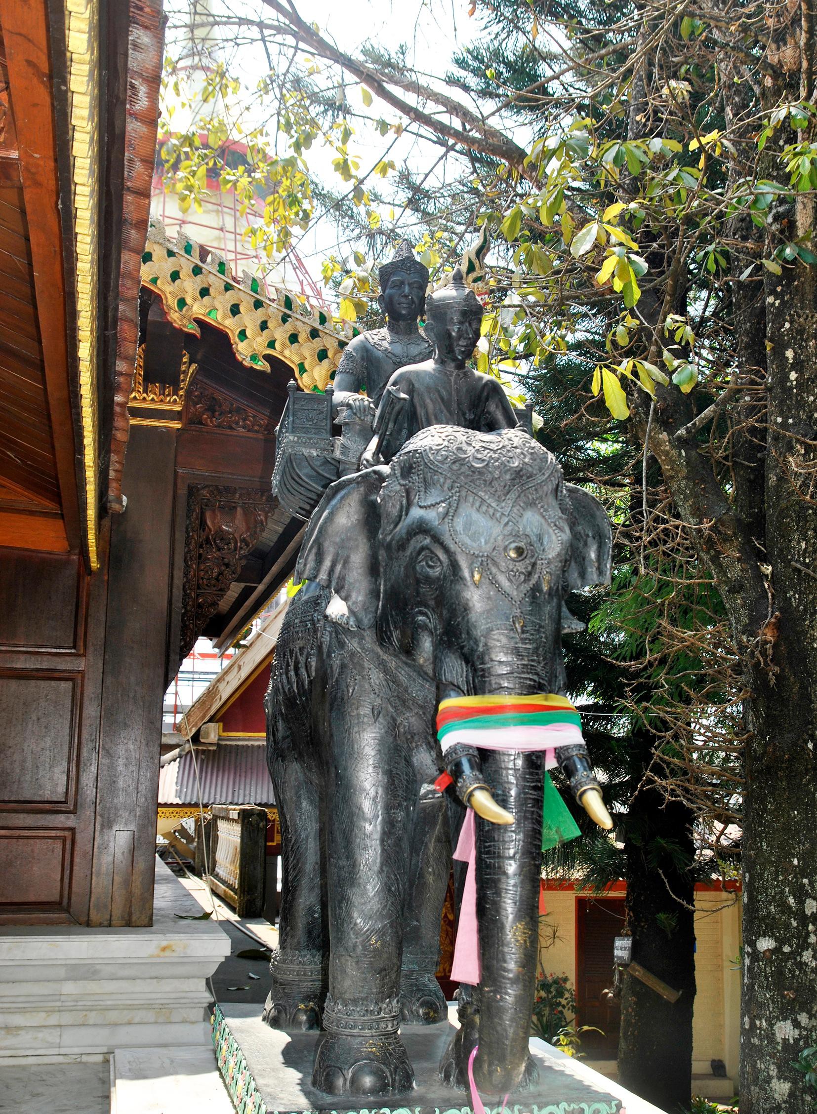 Năm 1368, vua Nu Naone của vương quốc Lanna yêu cầu nhà sư mang di vật đến cung điện. Ngay lập tức di vật tự phân chia thành hai phần, một phần kích cỡ như cũ, một phần nhỏ hơn. Phần nhỏ được cất giữ ở một ngôi chùa, còn phần kia, nhà vua buộc vào người con voi trắng. Voi được thả vào rừng, leo lên núi Doi Suthep, rống lên ba lần rồi chết. Điều này được coi là điềm báo nơi di vật muốn được cất giữ, vì thế vua Nu Naone cho xây đền ở nơi đây vào cuối thế kỷ XIV.