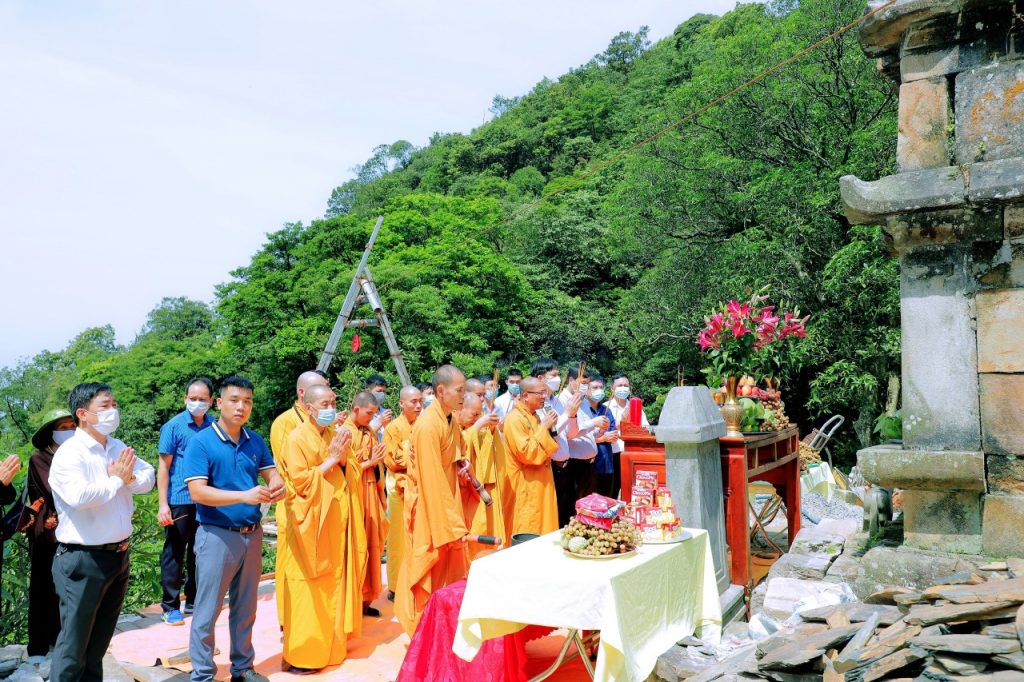 Thượng tọa Thích Đạo Hiển – Ủy viên Hội đồng Trị sự, Phó Trưởng ban kiêm Chánh Thư kí Ban Trị sự Giáo hội Phật giáo Việt Nam (GHPGVN) tỉnh Quảng Ninh đã quang lâm chứng minh và chủ trì nghi thức tâm linh trước lễ Thượng lương.