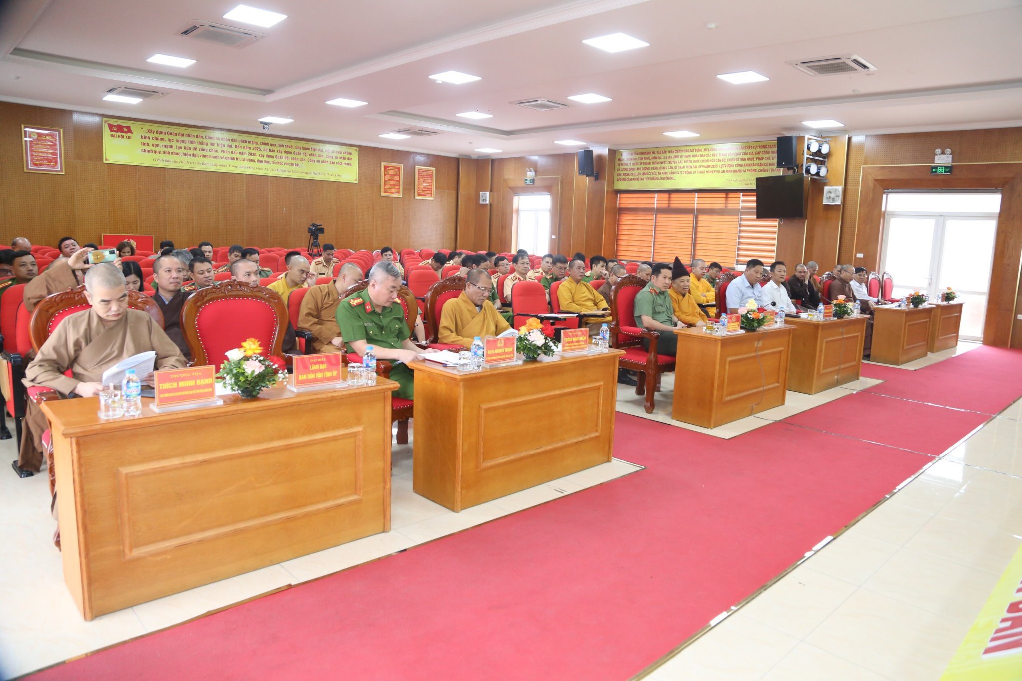 Đại biểu Công an có Thiếu tướng Đinh Văn Nơi – Giám đốc Công an tỉnh; Đại tá Nguyễn Thuận – Phó Giám đốc Công an tỉnh; ông Nguyễn Đăng Kiên – Trưởng ban Tôn giáo tỉnh; ông Đỗ Khánh Tùng – Phó Chủ tịch Ủy ban MTTQ Việt Nam tỉnh Quảng Ninh; cùng đại diện các phòng ban liên quan.