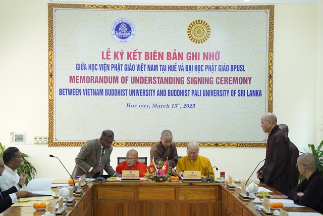 Nhân chuyến thăm lần này, hai bên đã trồng cây Bồ đề lưu niệm. Tiếp đến là ký kết biên bản ghi nhớ giữa Học viện PGVN tại Huế và Đại học Phật giáo BPULS (Sri Lanka), biên bản gồm 09 điều nhằm tăng cường mối quan hệ hữu nghị giữa hai đơn vị trong công tác giáo dục Phật giáo và đào tạo Tăng tài.