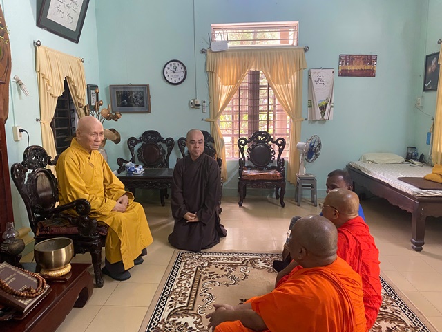 Đón tiếp thân mật phái đoàn tại Học viện PGVN tại Huế có HT.Thích Hải Ấn, UVTT HĐTS GHPGVN, Viện trưởng Học viện PGVN tại Huế; TT.TS Thích Nguyên Thành, UV HĐTS GHPGVN, Phó Viện trưởng Thường trực kiêm Trưởng Phòng Đào tạo Học viện; TT.TS Thích Nguyên Đạt, UV HĐTS GHPGVN, Phó Viện trưởng kiêm Trưởng Phòng Sau Đại học Học viện; TT.TS Thích Không Nhiên, Phó Viện trưởng kiêm Trưởng Phòng Nghiên cứu Học viện; TT.TS Thích Chúc Tín, Phó Viện trưởng Học viện; ĐĐ.Thích Hương Yên, Phó Viện trưởng kiêm Trưởng Phòng Hành chính Học viện cùng chư Tôn đức trong Hội đồng Điều hành Học viện.