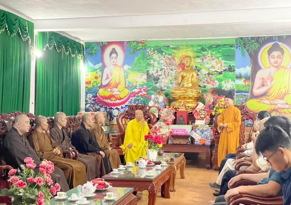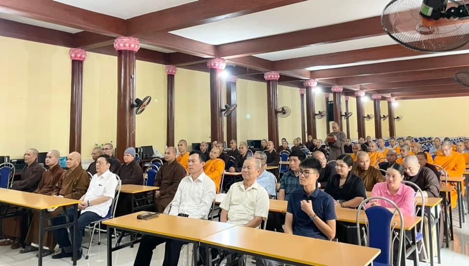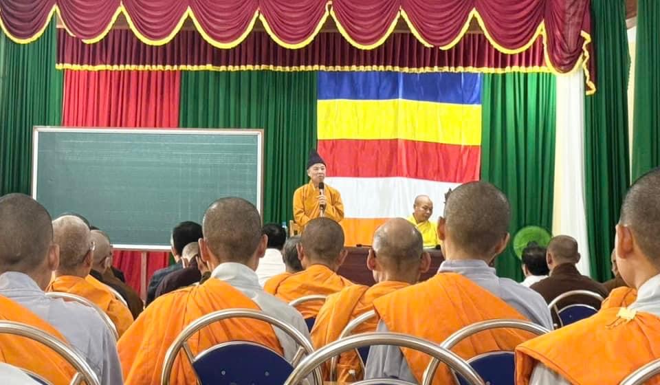 Gặp gỡ Tăng Ni sinh, lắng nghe đại diện Trường Trung cấp báo cáo tình hình tu học, Hoà thượng Thích Thanh Quyết – đã có một số góp ý về quy trình đào tạo và định hướng phát triển Trường trung cấp.