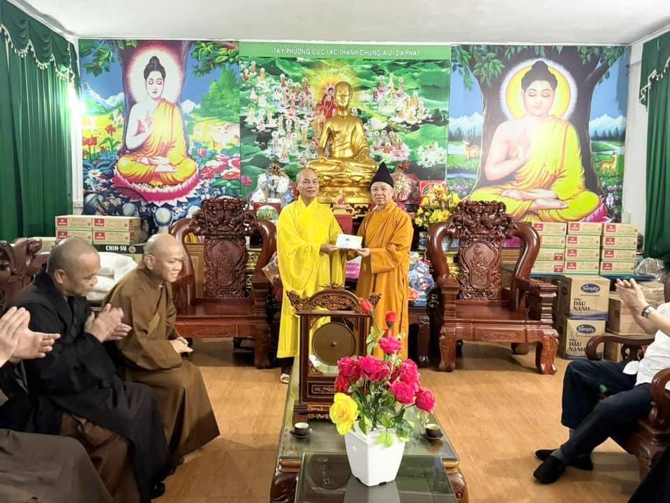 Đi cùng đoàn còn có Thượng toạ Thích Giác Như; Giáo sư Lương Gia Tĩnh- Đồng Uỷ viên HĐTS, Uỷ viên Thường trực Ban Giáo dục Phật giáo Tw.