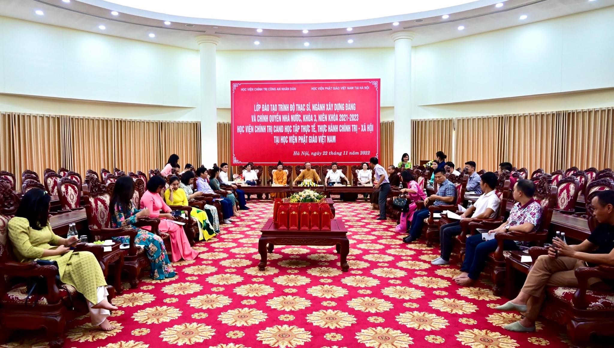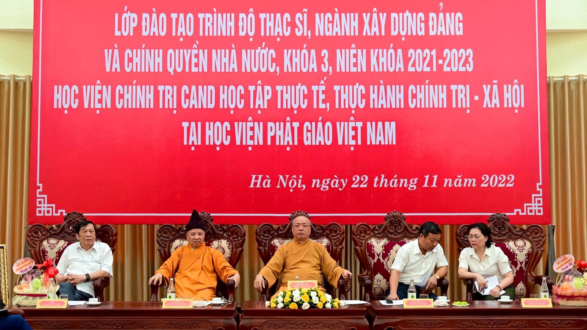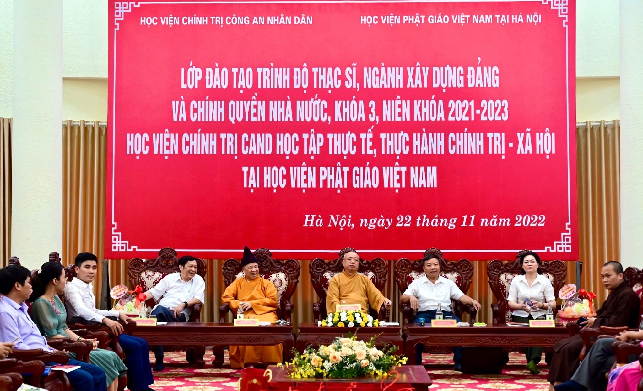 Đây là lần đầu tiên Học viện Chính trị CAND và Học viện PGVN Hà Nội tổ chức giao lưu học hỏi, trên tinh thần cùng xây dựng và chia sẻ những nội dung về công tác đào tạo, quản lý giáo dục, cùng những sứ mệnh của Phật giáo Việt Nam trong sự nghiệp bảo vệ Tổ quốc, xây dựng giá trị con người, đoàn kết dân tộc, kinh nghiệm đào tạo sau Đại học.