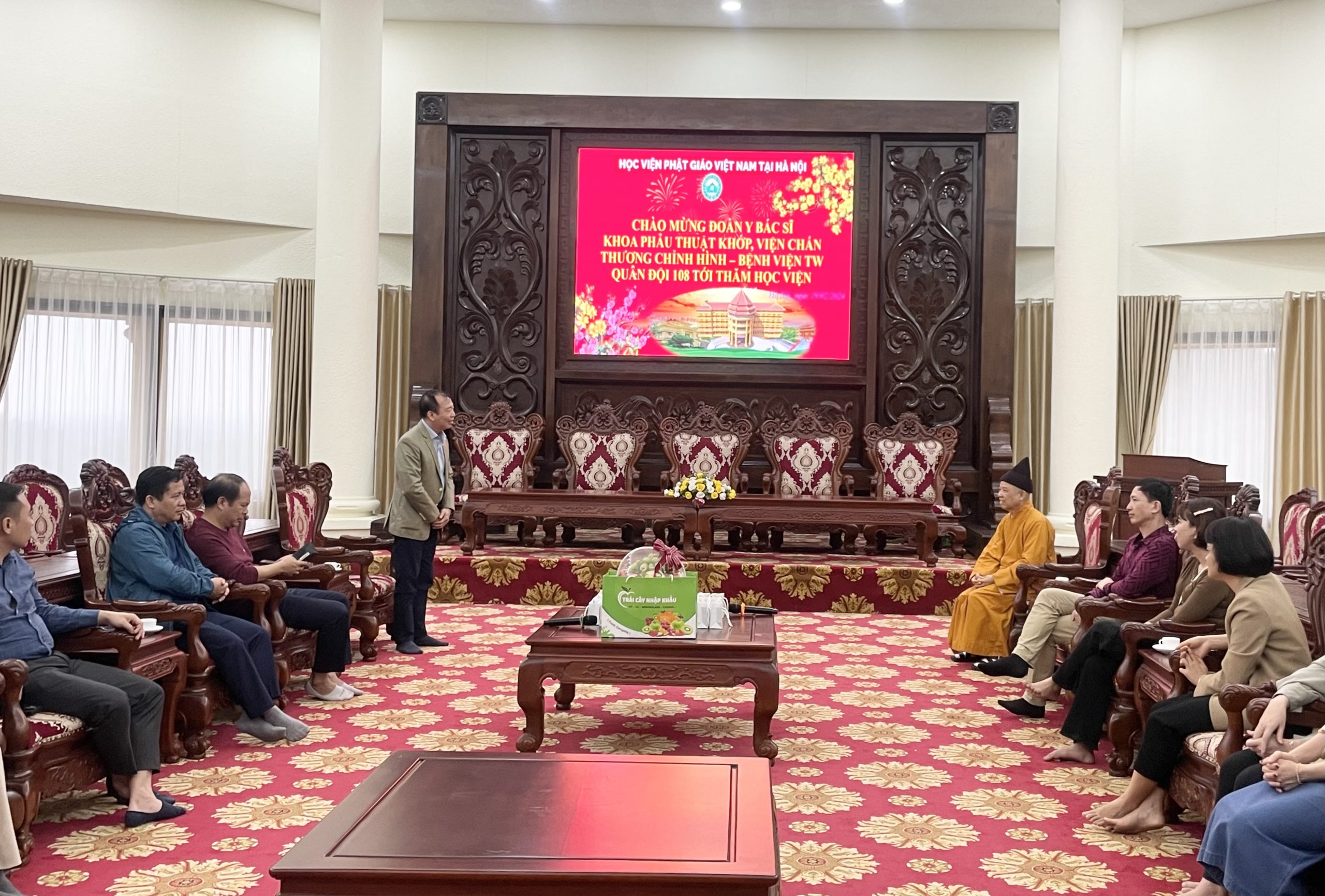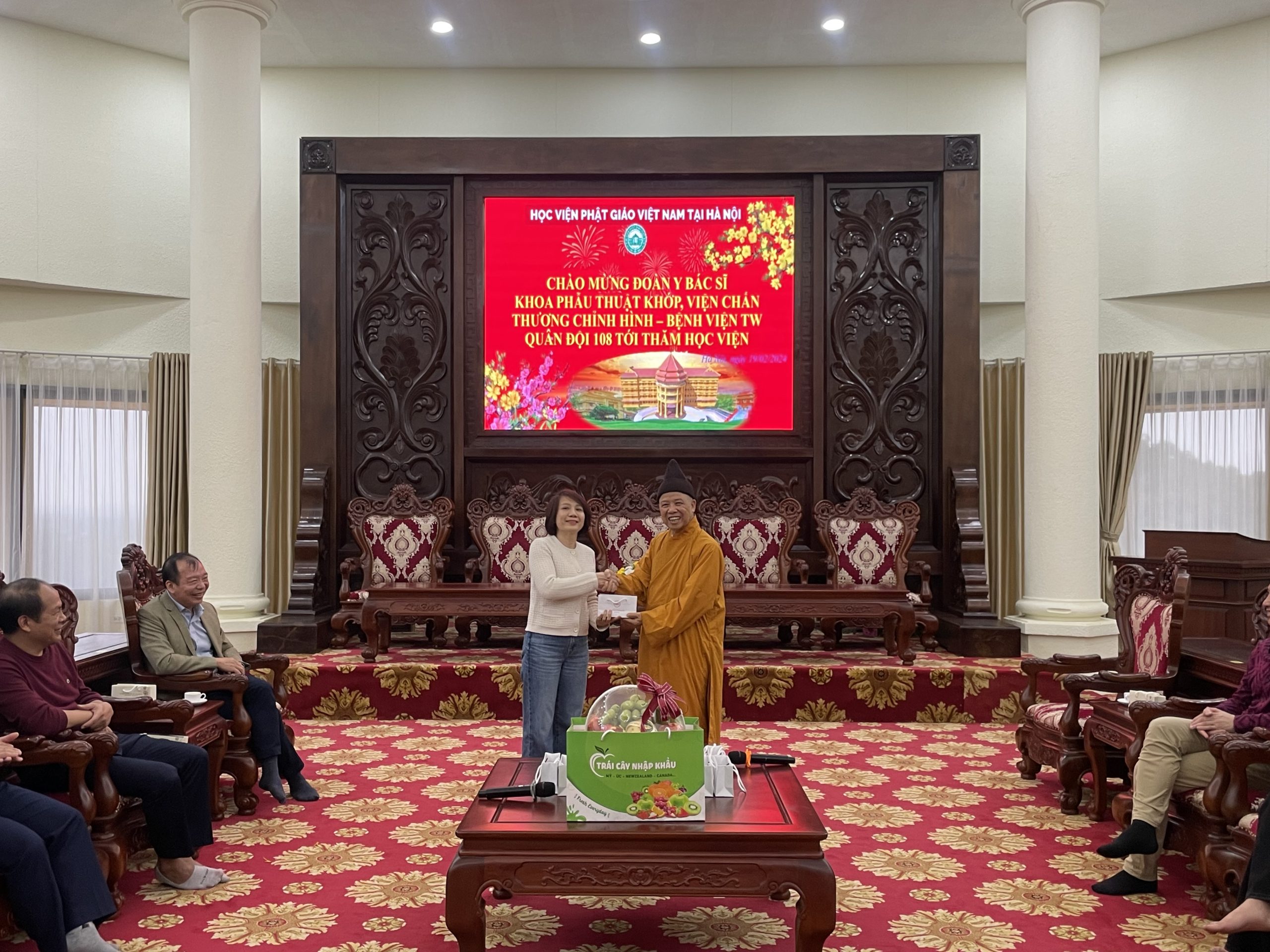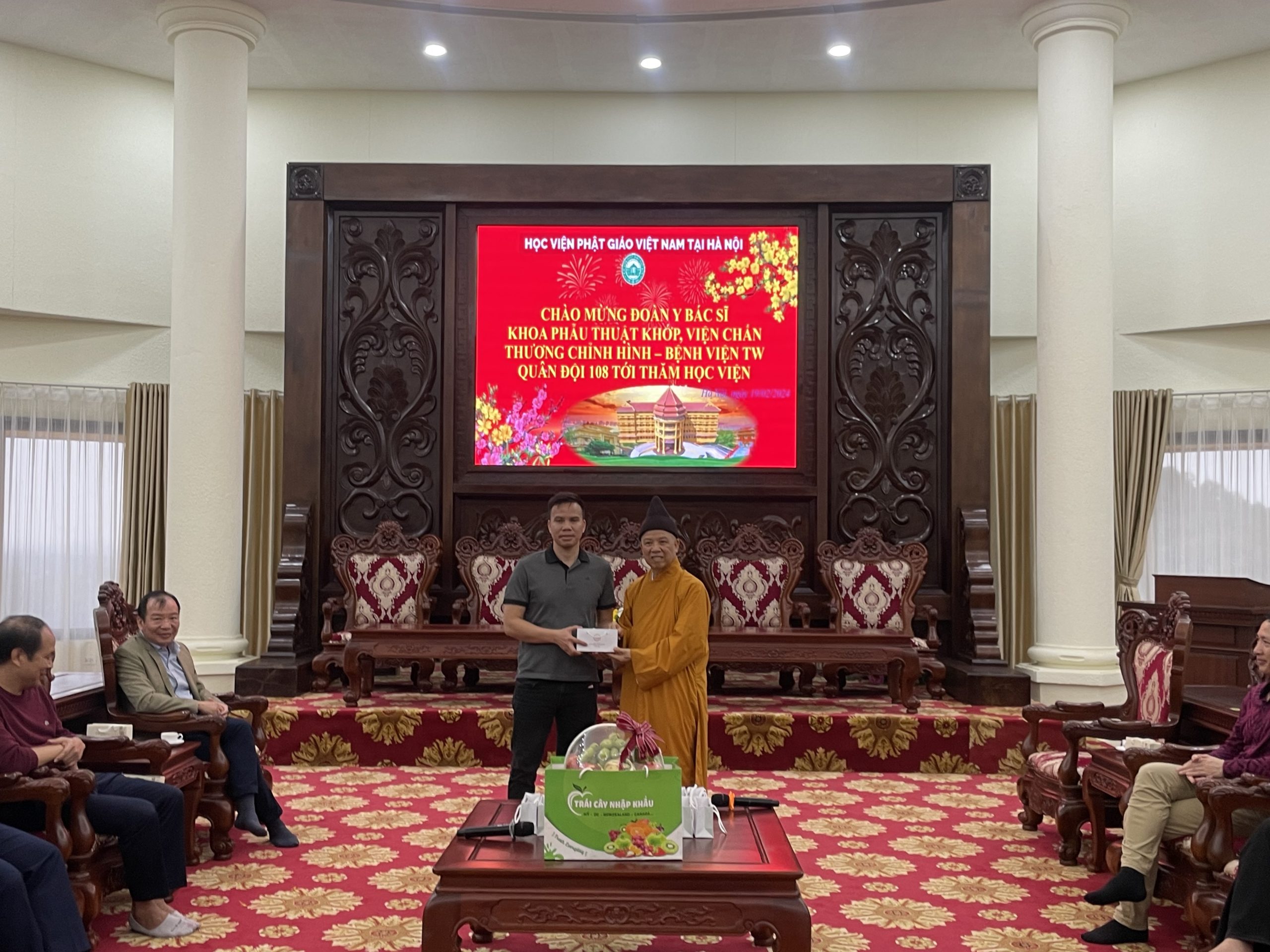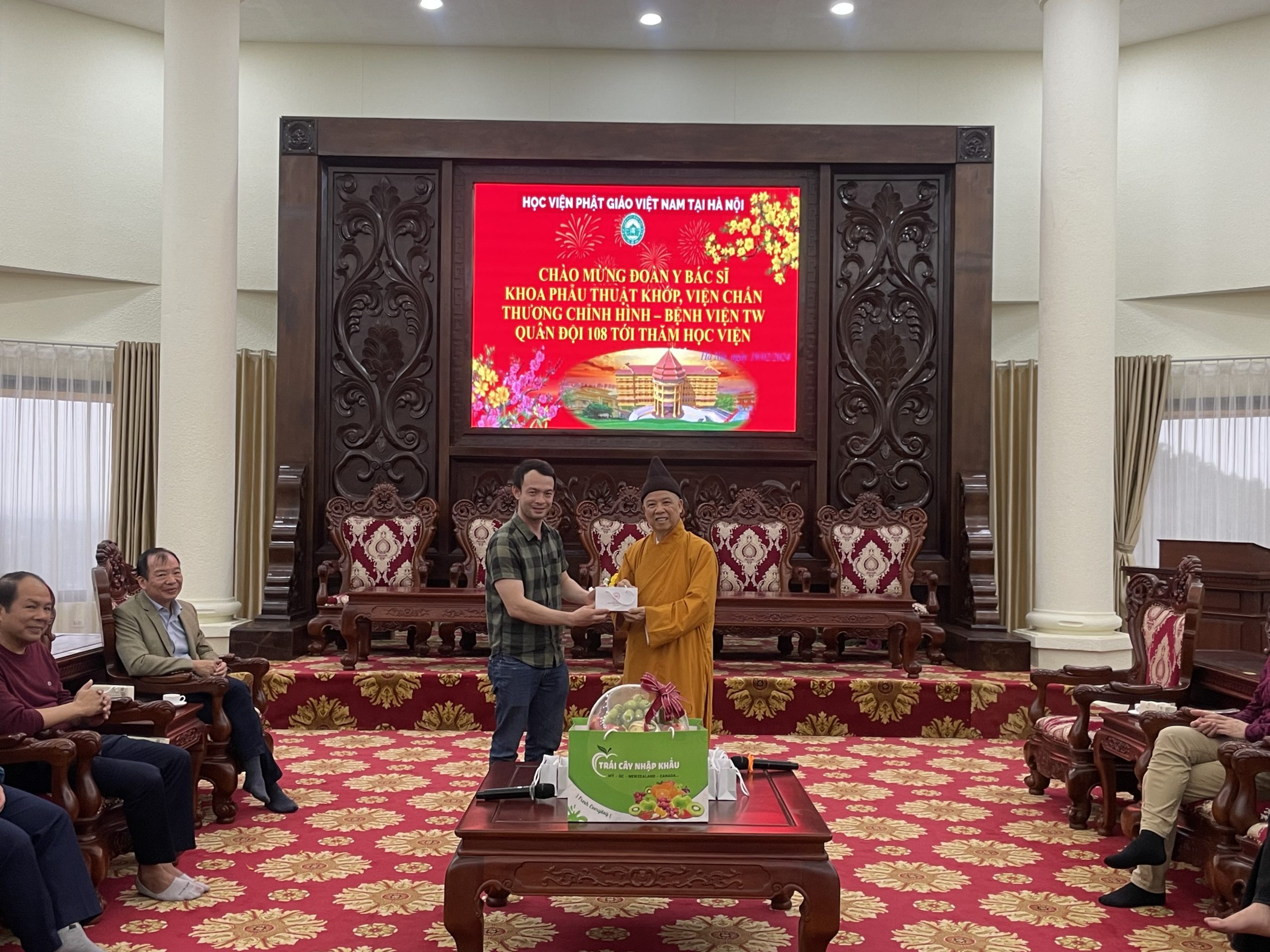 Nhân dịp đầu xuân Giáp Thìn 2024, chiều ngày mùng 10 tháng 01 năm Giáp Thìn, đoàn cán bộ Y Bác Sĩ Khoa Phẫu Thuật Khớp, Viện Chấn thương chỉnh hình – Bệnh viện TW Quân Đội 108 tới thăm Học viện Phật giáo Việt Nam tại Hà Nội.