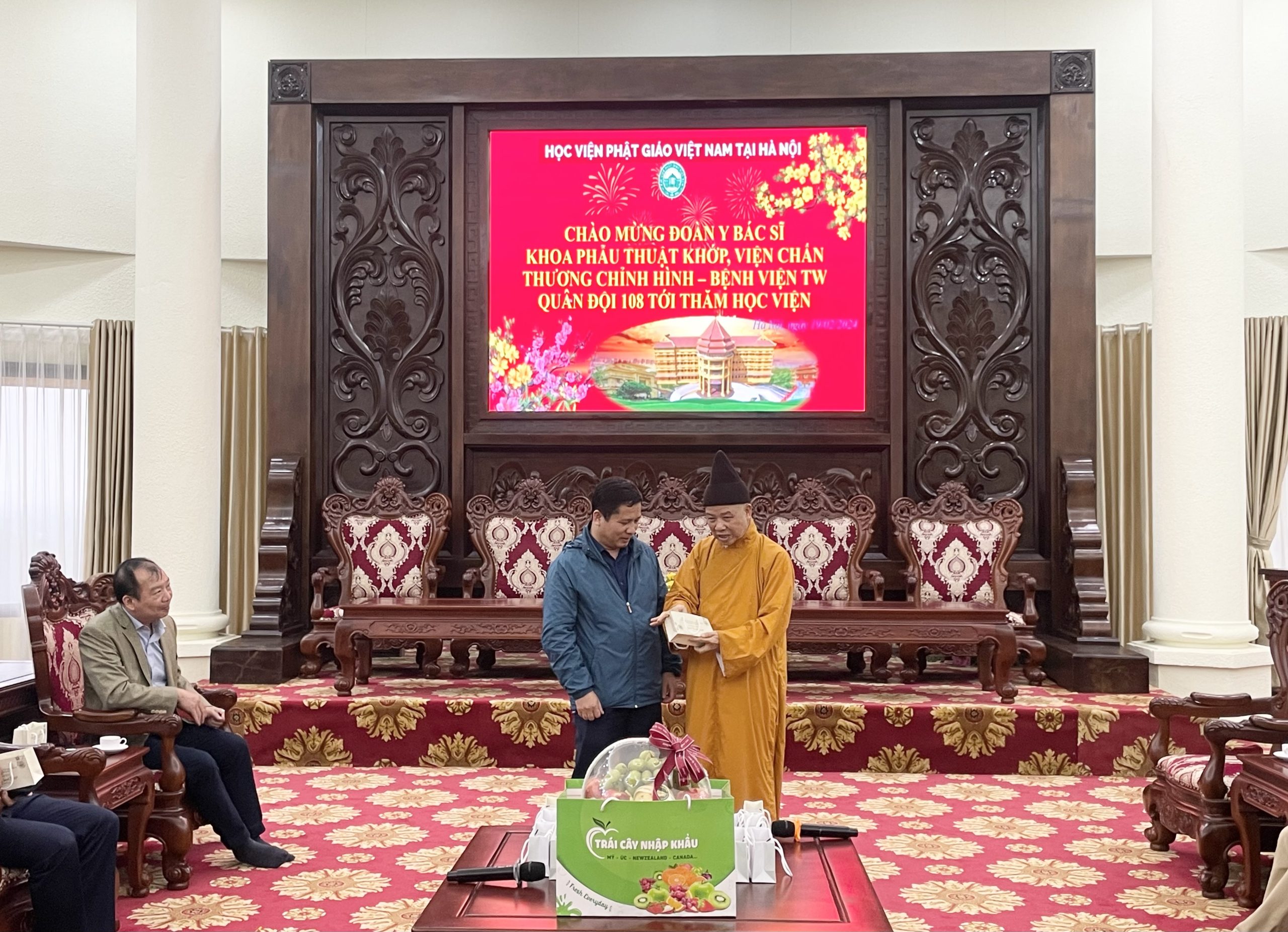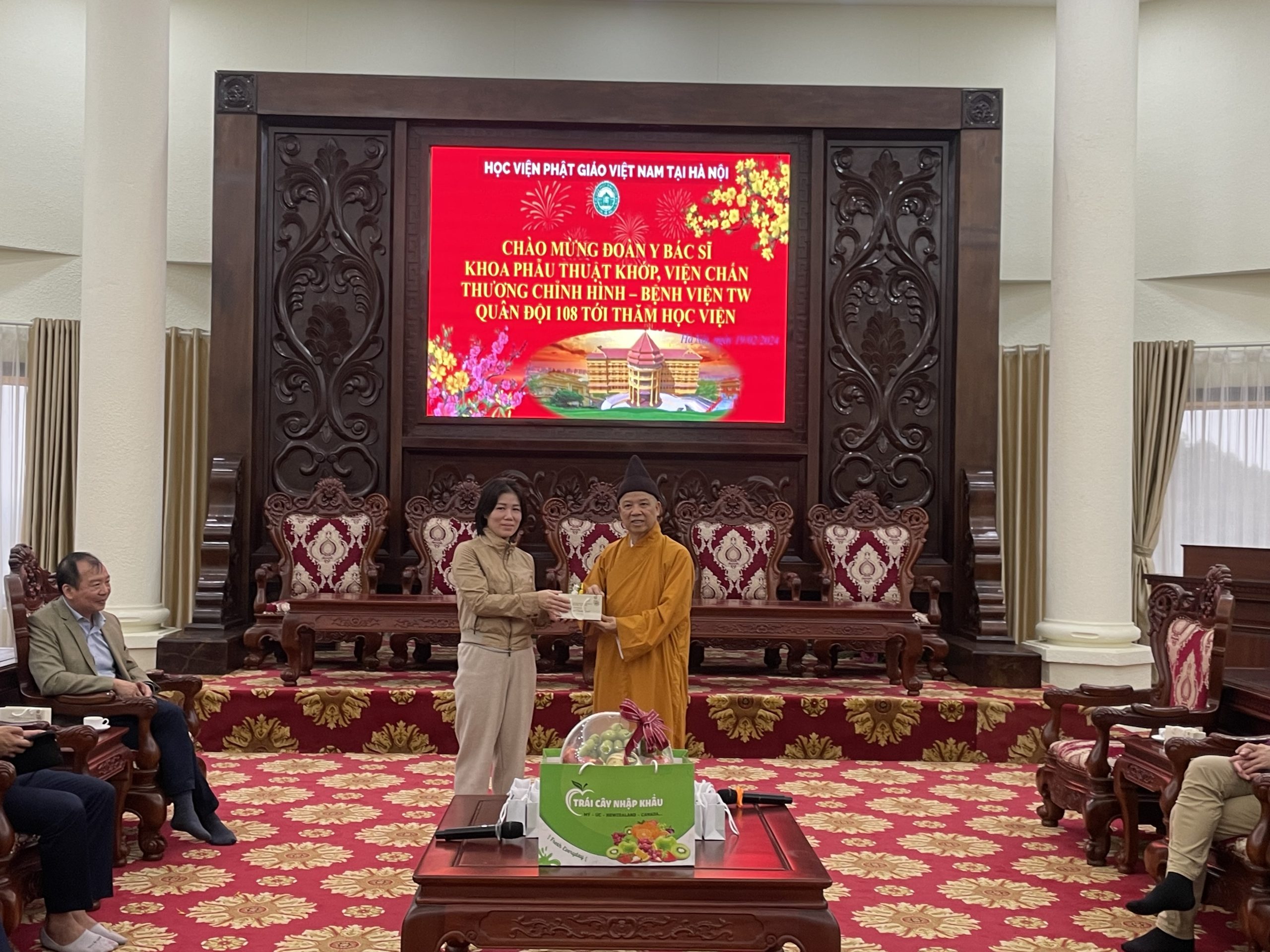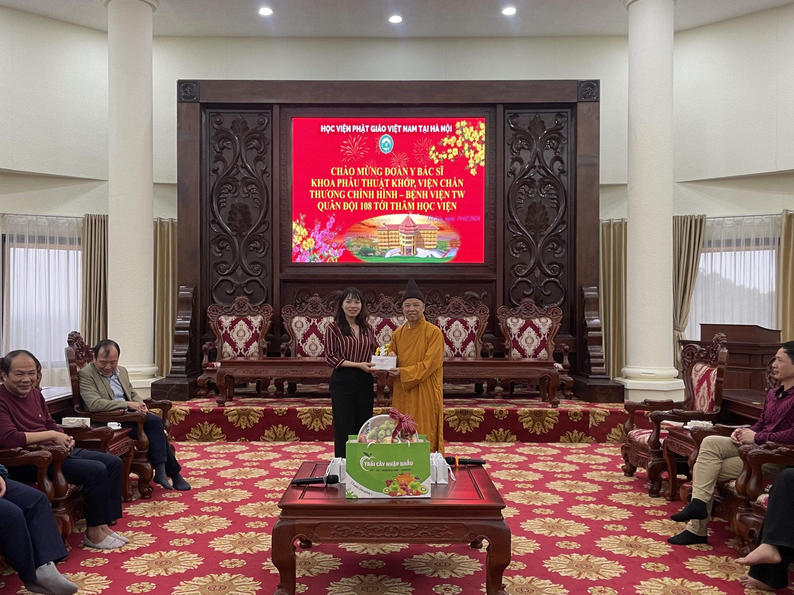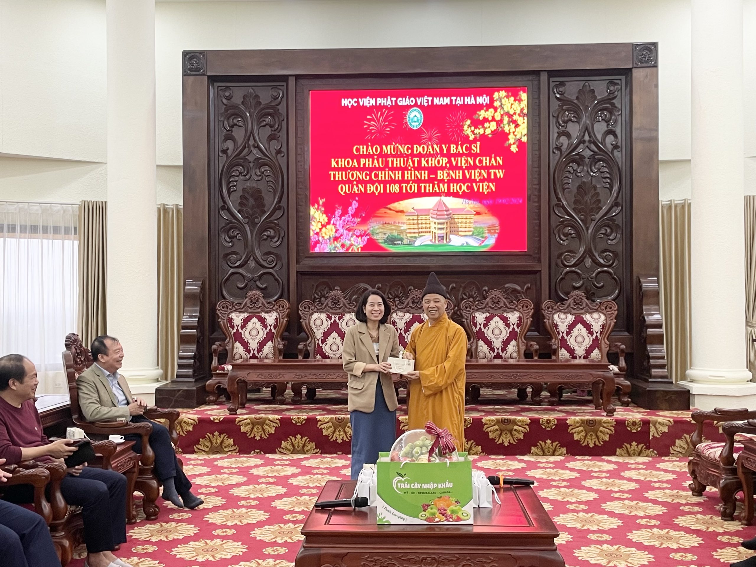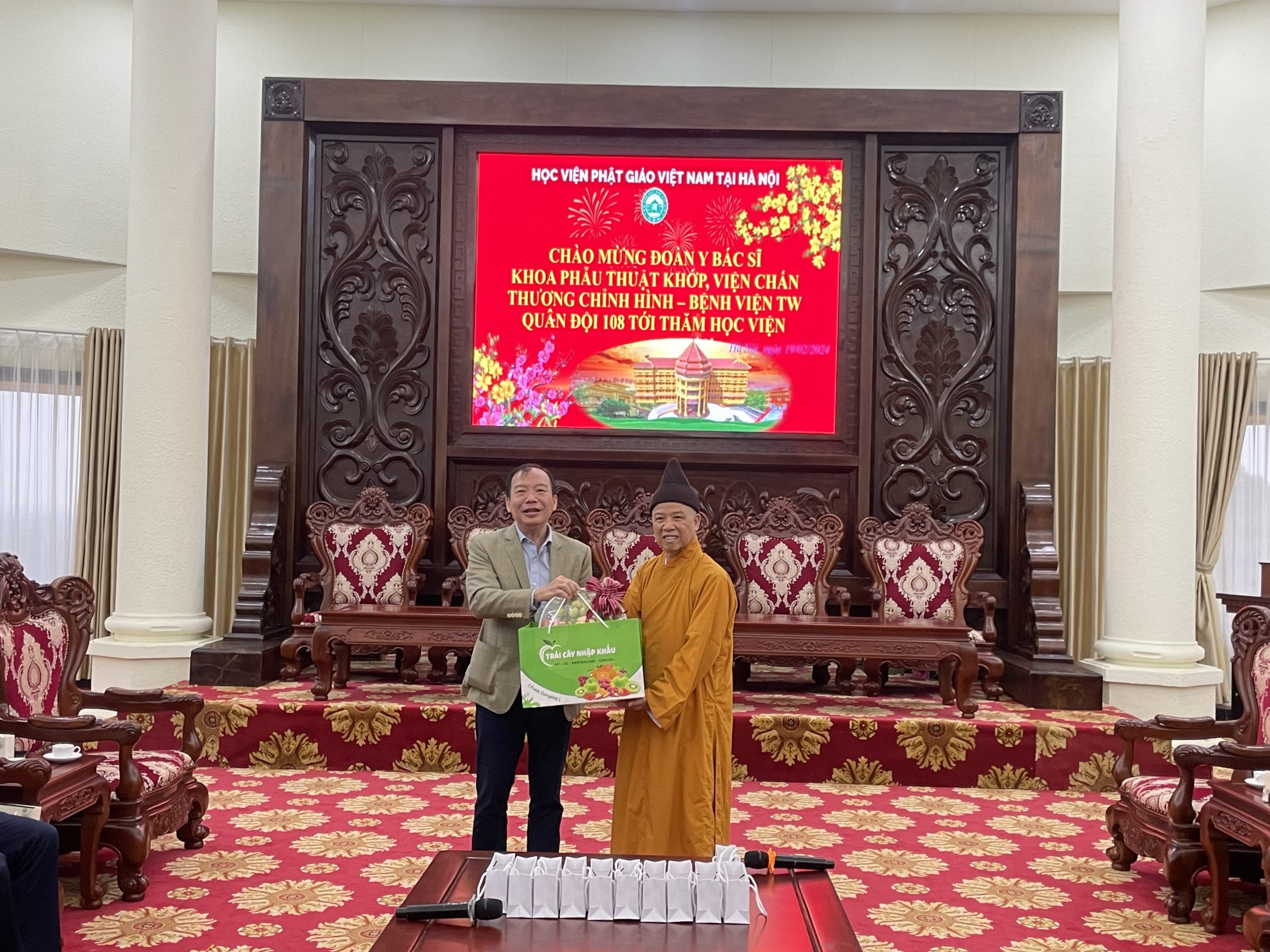 Nhân dịp đầu xuân Giáp Thìn 2024, chiều ngày mùng 10 tháng 01 năm Giáp Thìn, đoàn cán bộ Y Bác Sĩ Khoa Phẫu Thuật Khớp, Viện Chấn thương chỉnh hình – Bệnh viện TW Quân Đội 108 tới thăm Học viện Phật giáo Việt Nam tại Hà Nội.
