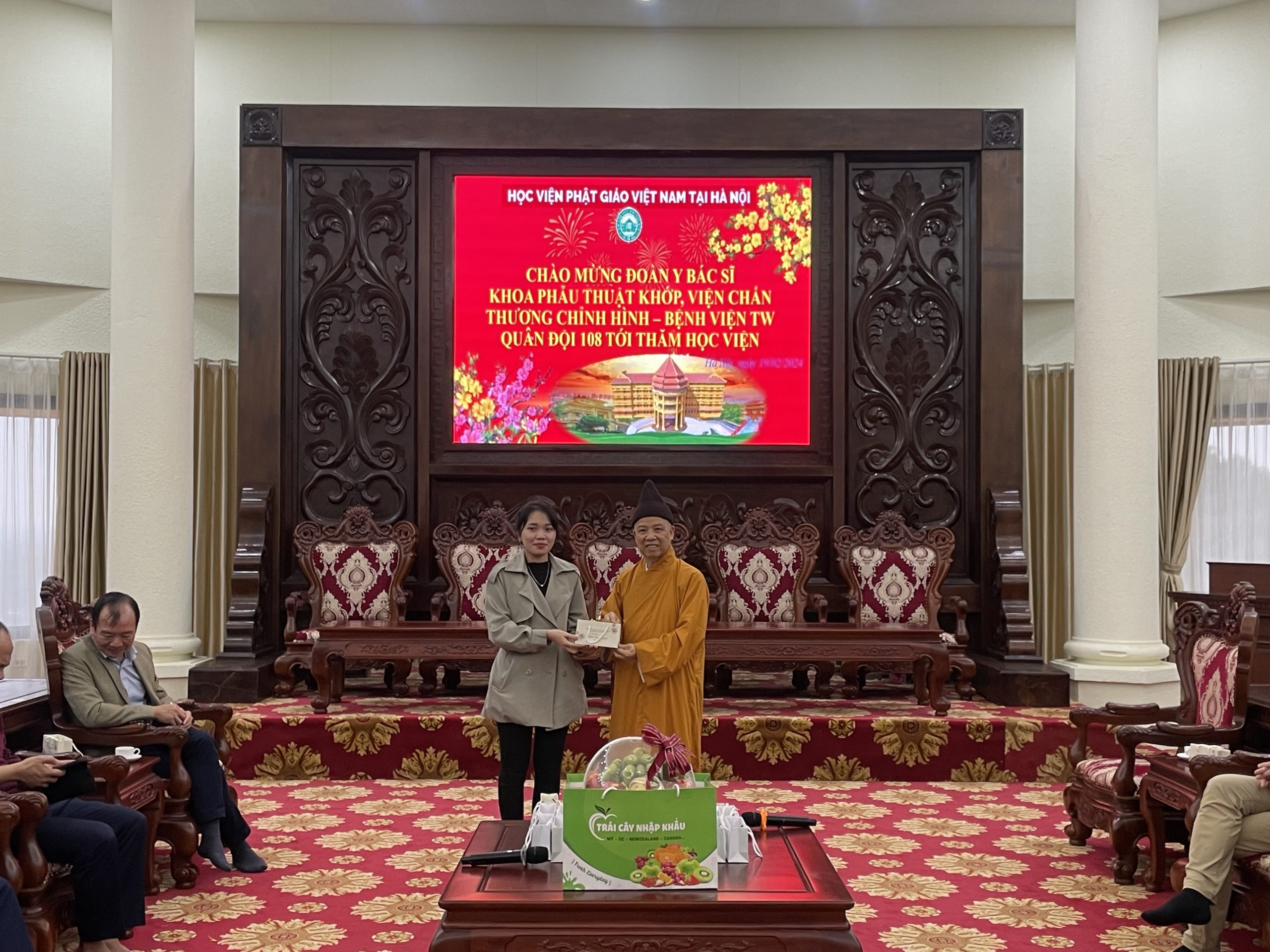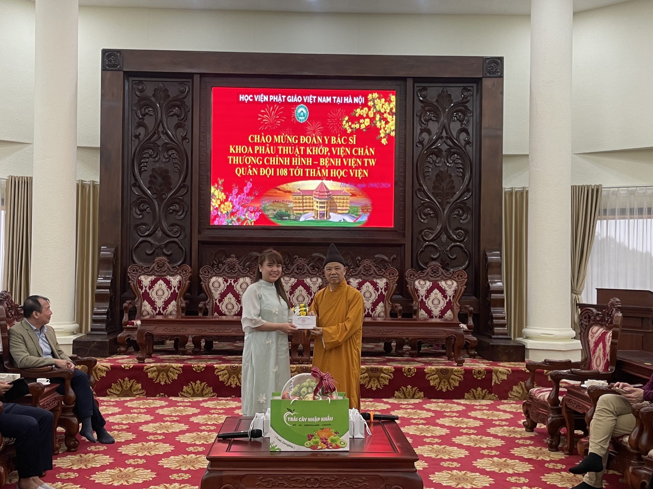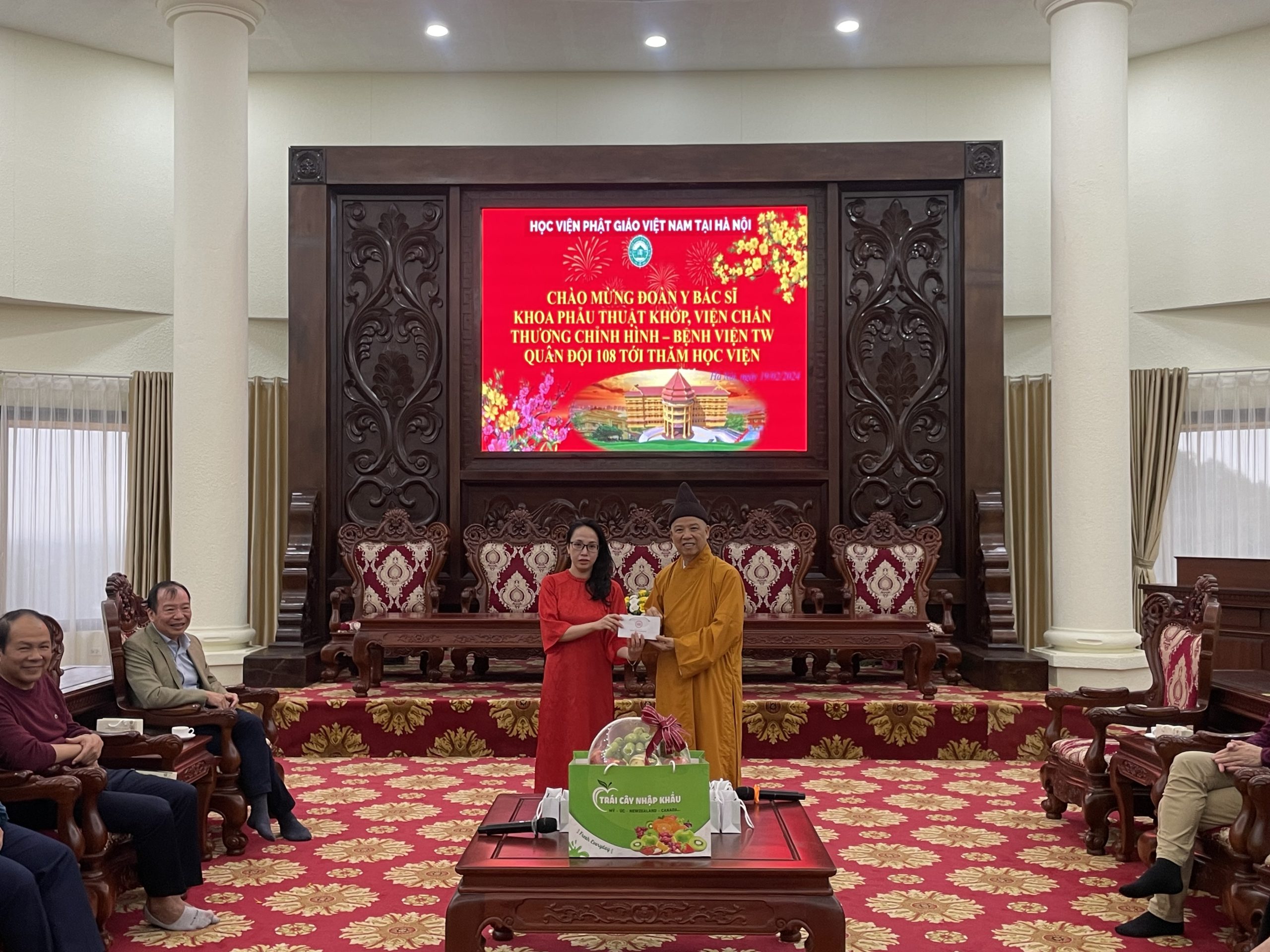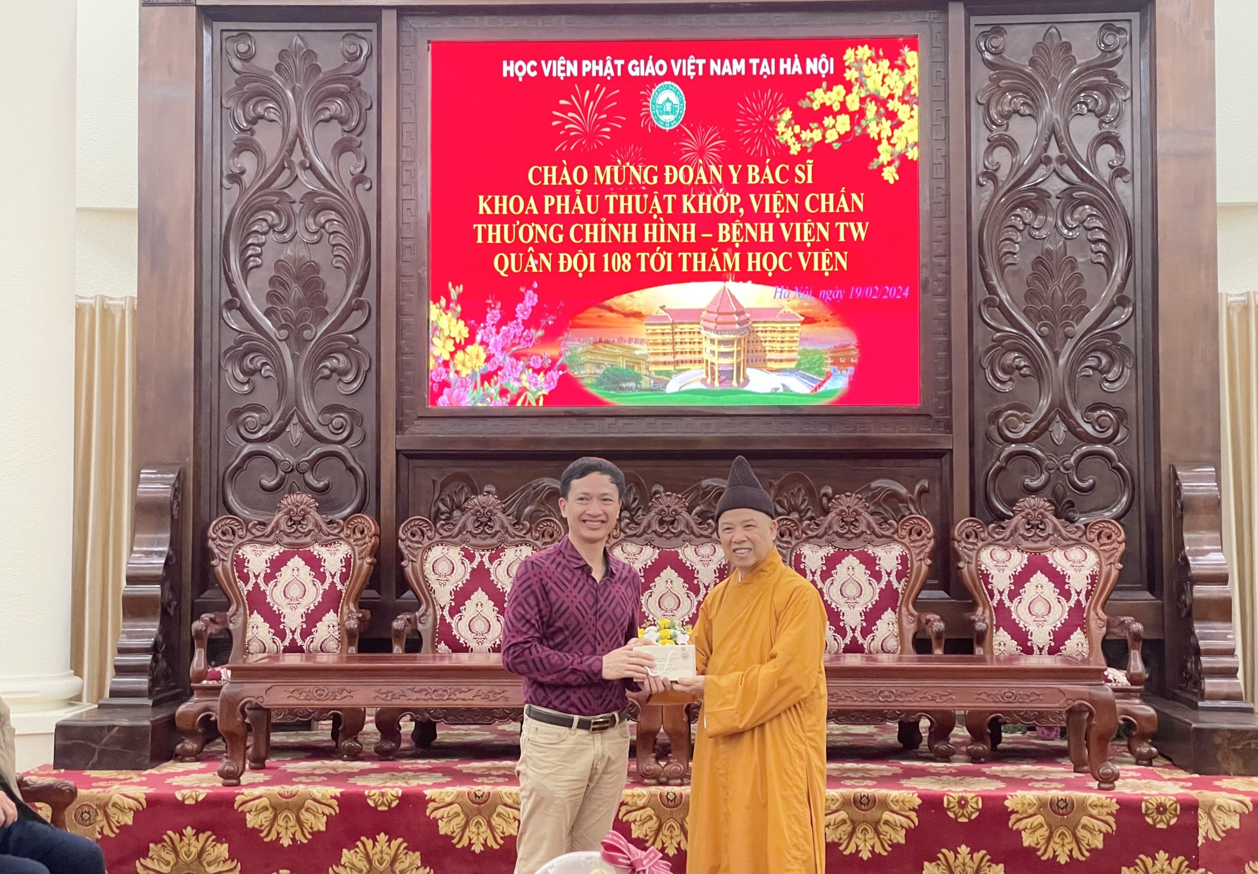 Nhân dịp đầu xuân Giáp Thìn 2024, chiều ngày mùng 10 tháng 01 năm Giáp Thìn, đoàn cán bộ Y Bác Sĩ Khoa Phẫu Thuật Khớp, Viện Chấn thương chỉnh hình – Bệnh viện TW Quân Đội 108 tới thăm Học viện Phật giáo Việt Nam tại Hà Nội.