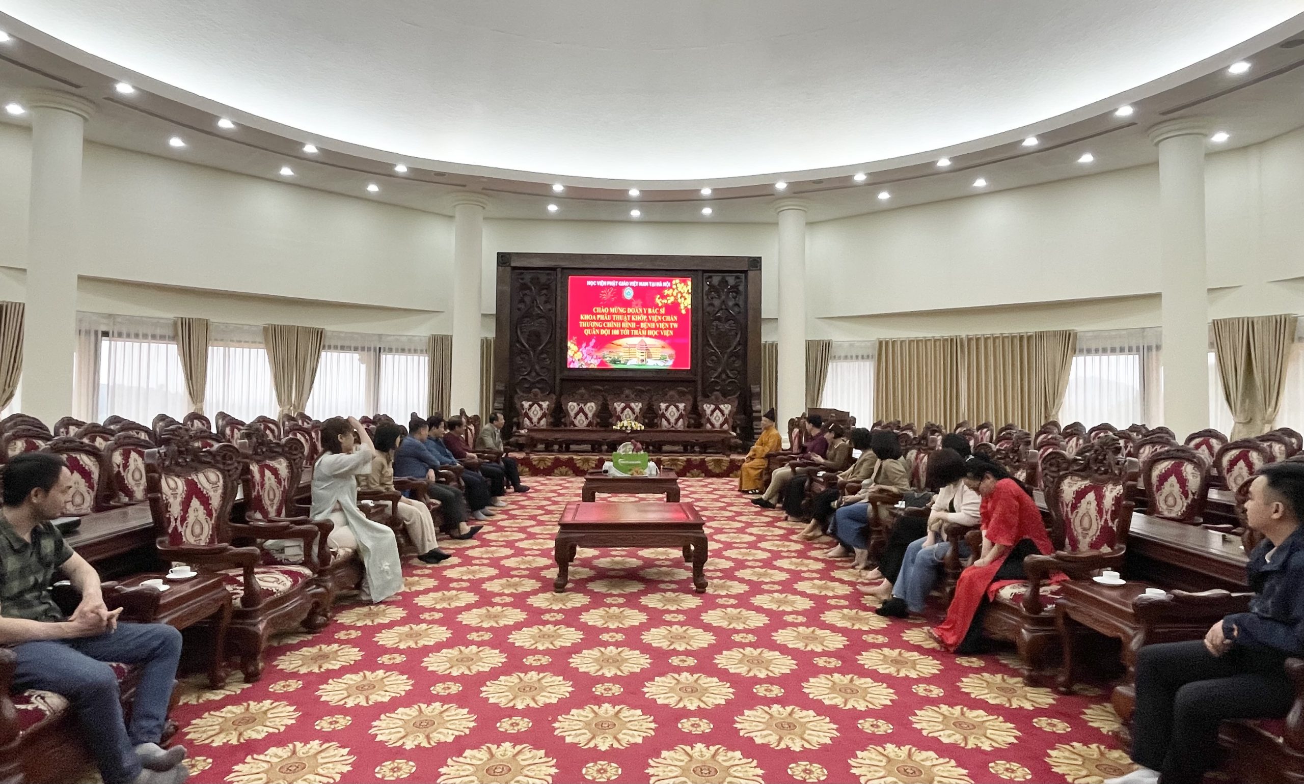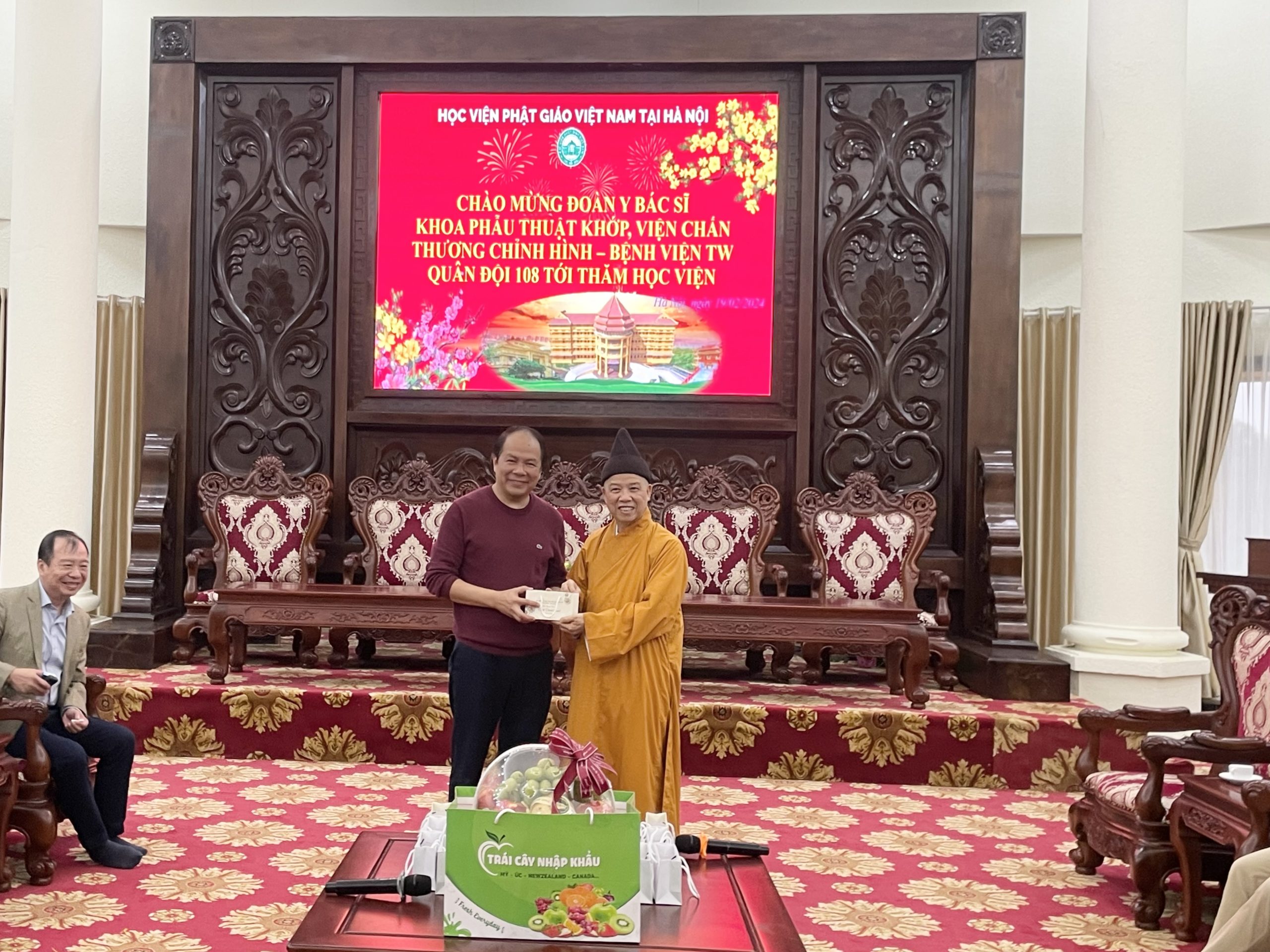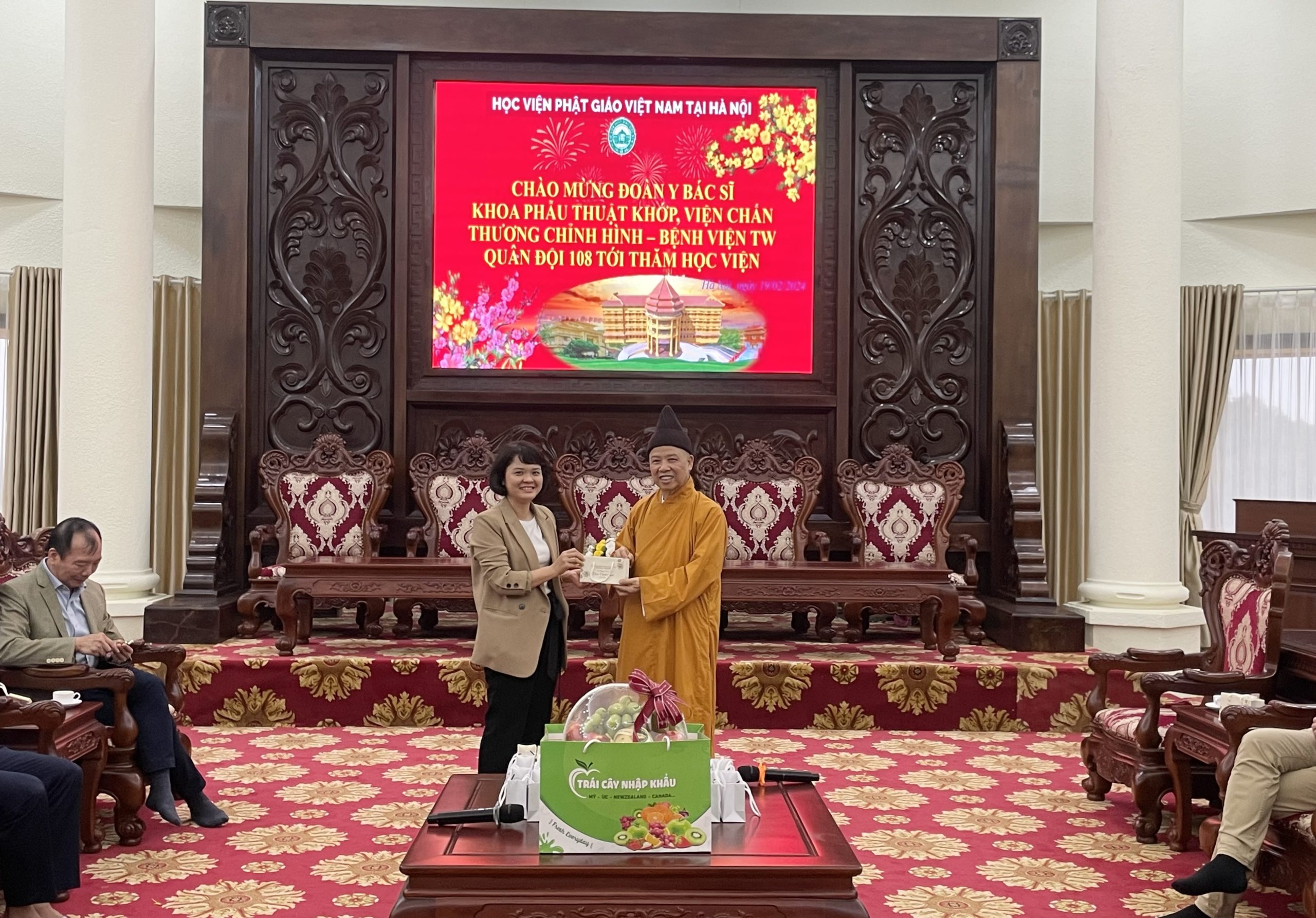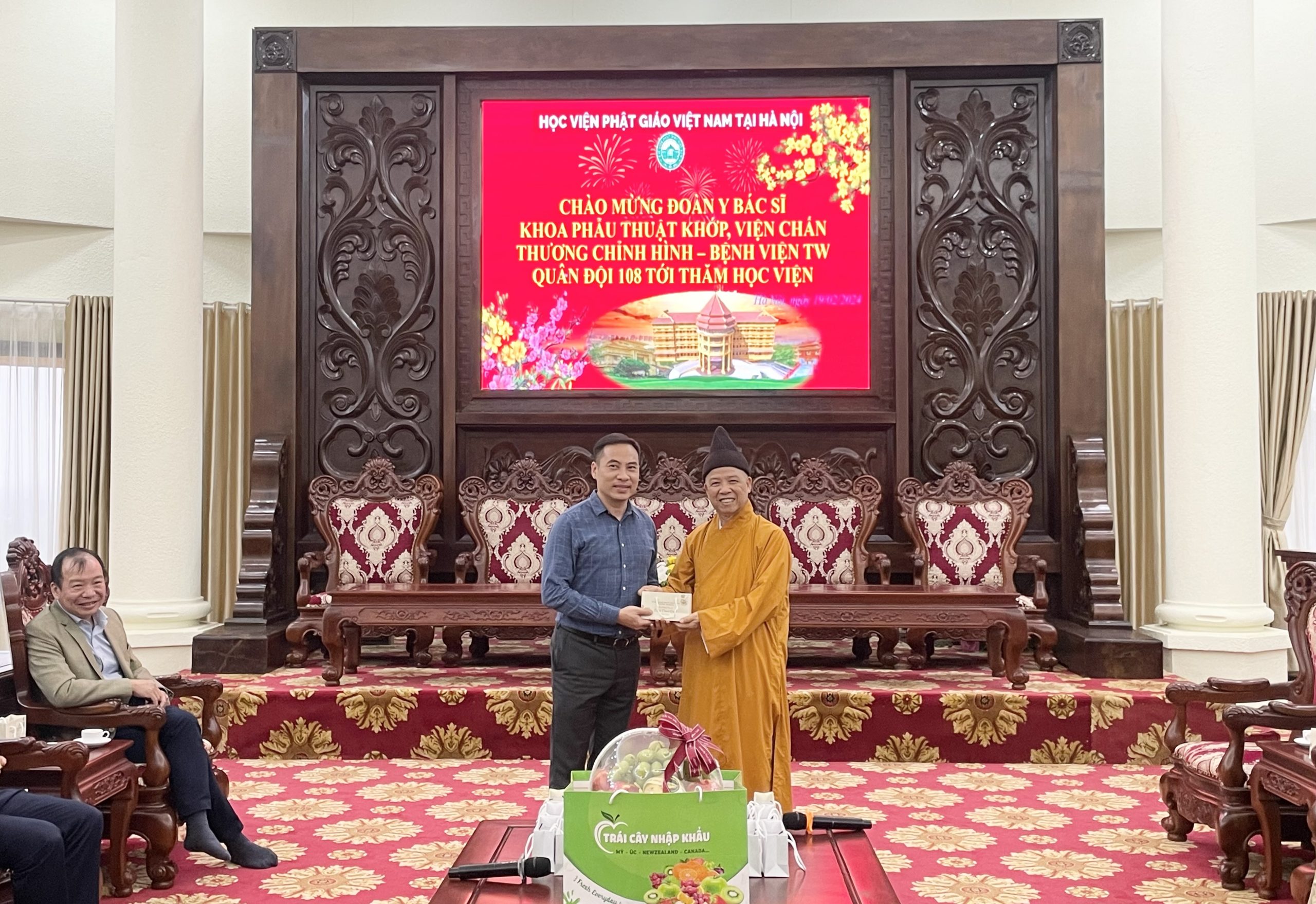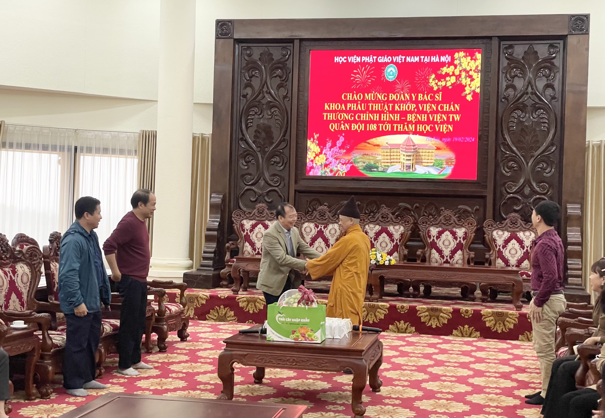 Nhân dịp đầu xuân Giáp Thìn 2024, chiều ngày mùng 10 tháng 01 năm Giáp Thìn, đoàn cán bộ Y Bác Sĩ Khoa Phẫu Thuật Khớp, Viện Chấn thương chỉnh hình – Bệnh viện TW Quân Đội 108 tới thăm Học viện Phật giáo Việt Nam tại Hà Nội.