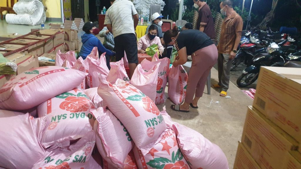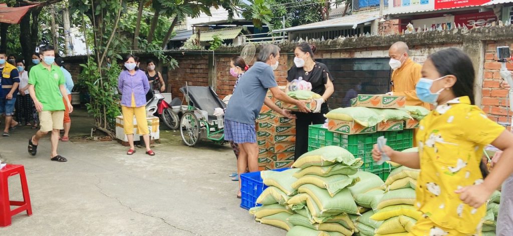 Tại tỉnh Đồng Nai chùa đã tặng quà đến các người dân lao động trong các nhà trọ và bà con gặp khó khăn tại khu Phố Miễu, phường Phước Tân và TP. Biên Hòa.