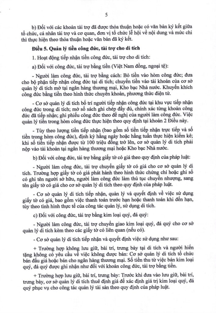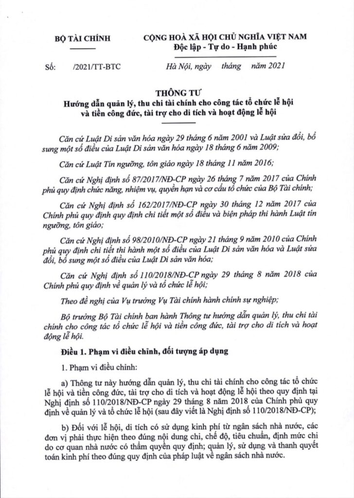 Dự thảo hiện đang được lấy ý kiến, nhằm quản lý chặt chẽ về thu chi tài chính, tiền công đức, tài trợ cho tổ chức lễ hội, di tích, và hoạt động lễ hội.
