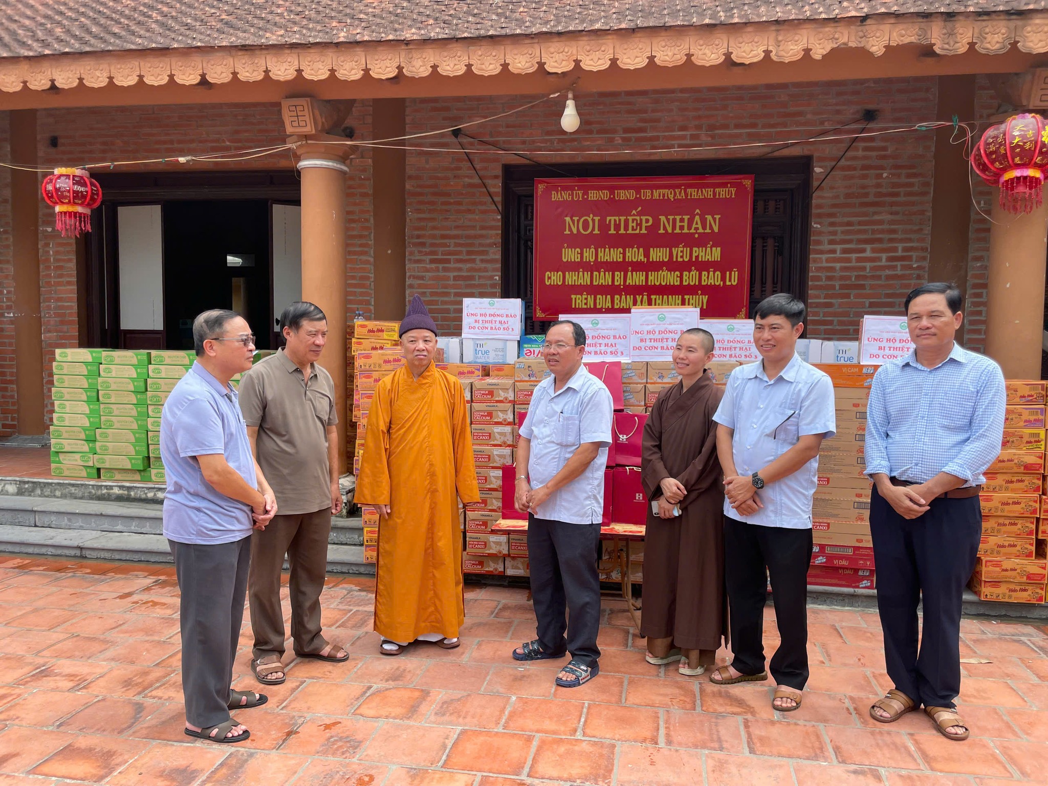 Dịp này, Hòa thượng Thích Thanh Quyết cùng lãnh đạo địa phương trực tiếp thăm hỏi và động viên trao tặng nhiều phần quà cho bà con nhân dân tại xã Thanh Thủy, Hà Nam.