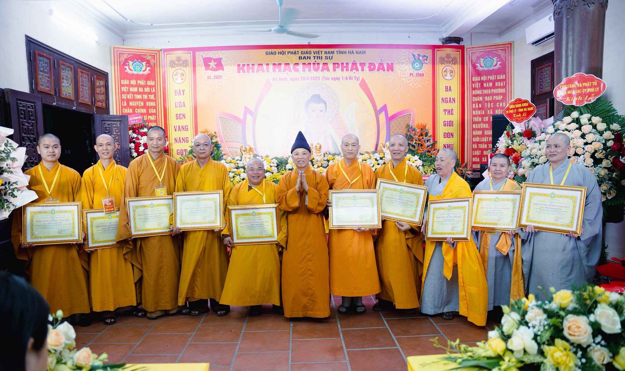 Tối ngày 28/4/2025, Ban Trị sự Phật giáo tỉnh Hà Nam tổ chức lễ Khai mạc mùa Phật đản tại trụ sở, với nhiều hoạt động tri ân các anh hùng liệt sĩ, trao bằng tuyên dương công đức cho nhiều tổ chức và cá nhân có nhiều đóng góp vào sự phát triển vững mạnh của Phật giáo tỉnh.