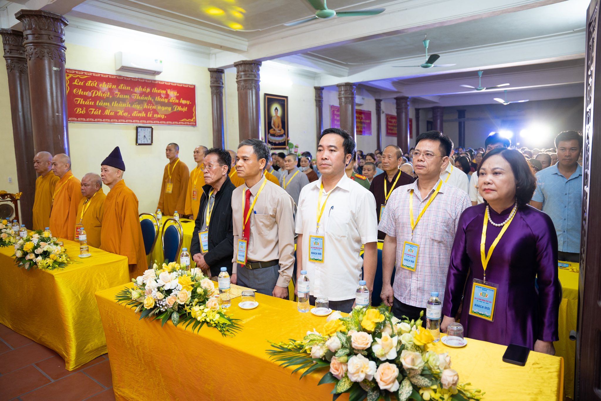 Trong buổi lễ, bà Đinh Thị Lụa – Phó Bí thư Thường trực Tỉnh uỷ cùng các Linh mục Giáo xứ Kiện Khê đã đến dự và tặng hoa chúc mừng Tăng Ni, Phật tử tỉnh Hà Nam nhân mùa Đức Phật đản sinh.