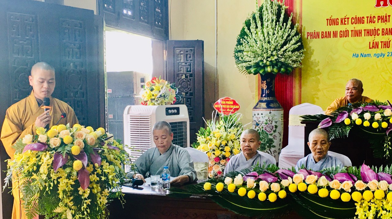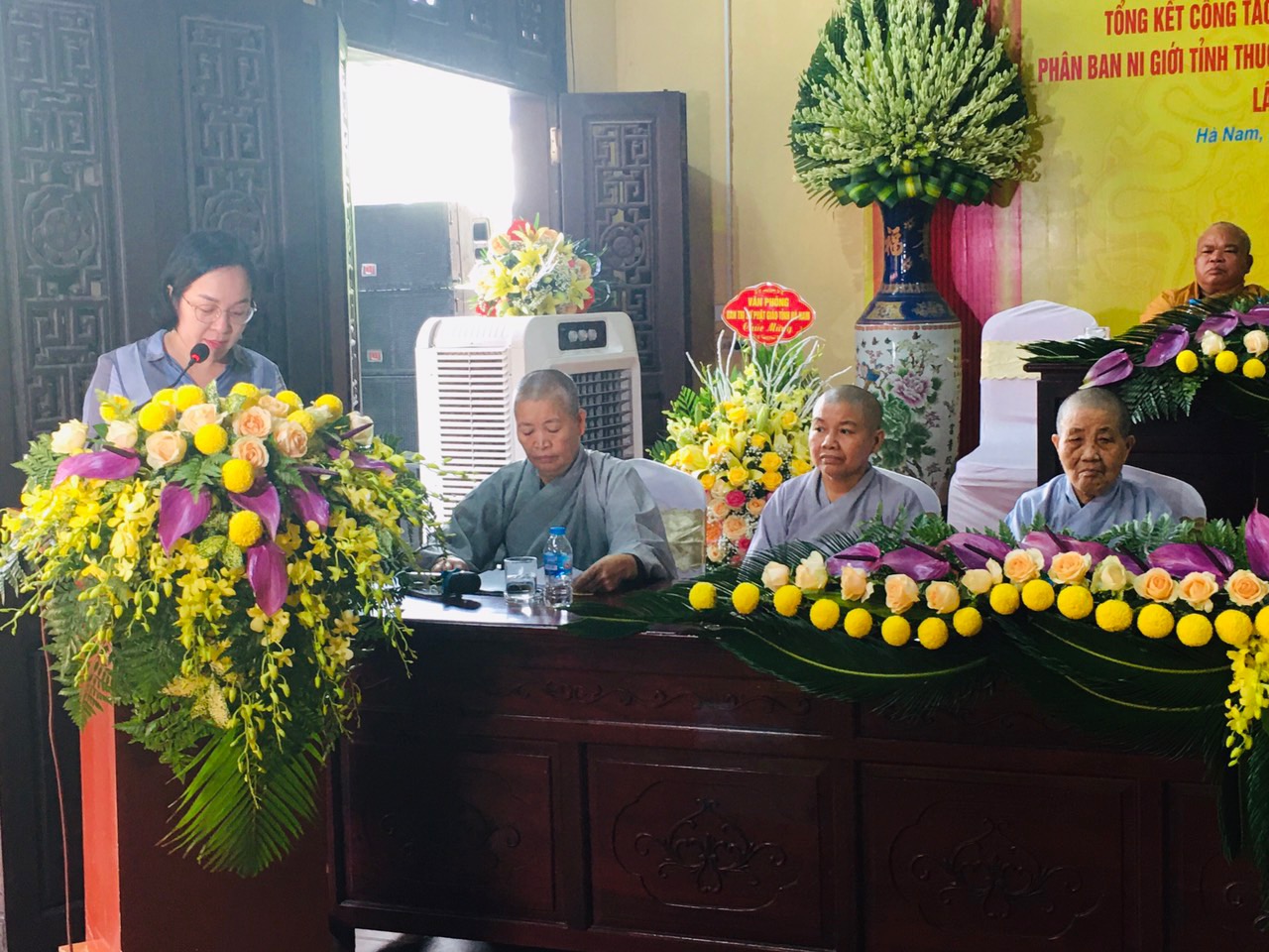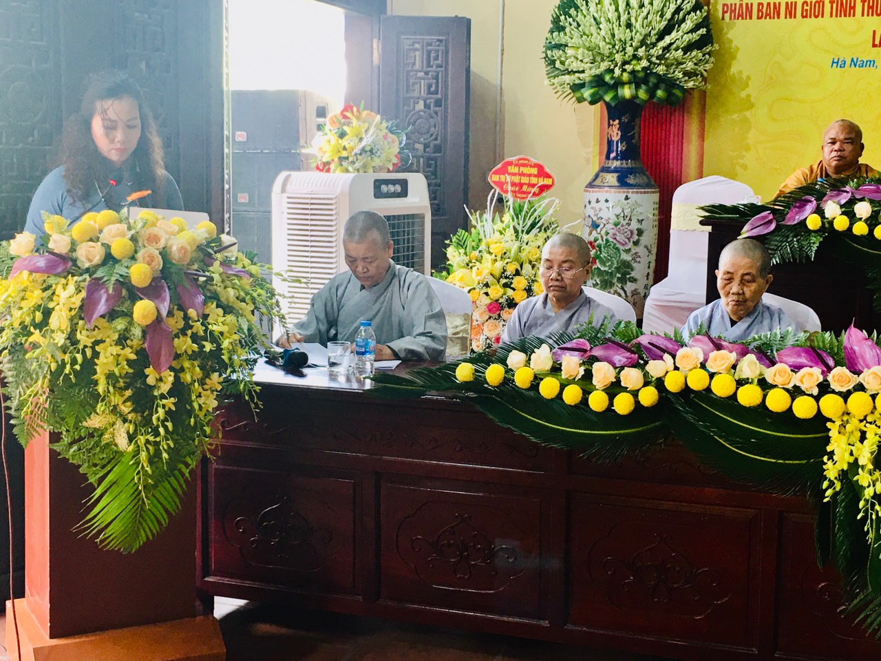Sau đó, Ni Sư Thích Đàm Huề đã báo cáo sơ lược về công tác Phật sự, tình hình Ni giới tỉnh Hà Nam và phương hướng hoạt động trong những năm tiếp theo của Phân ban Ni giới tỉnh.