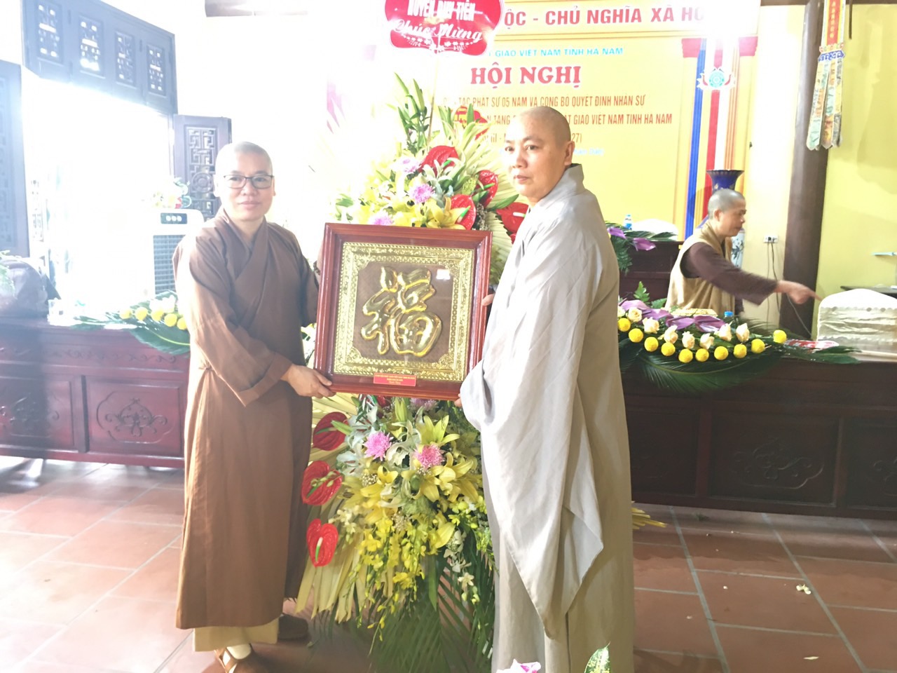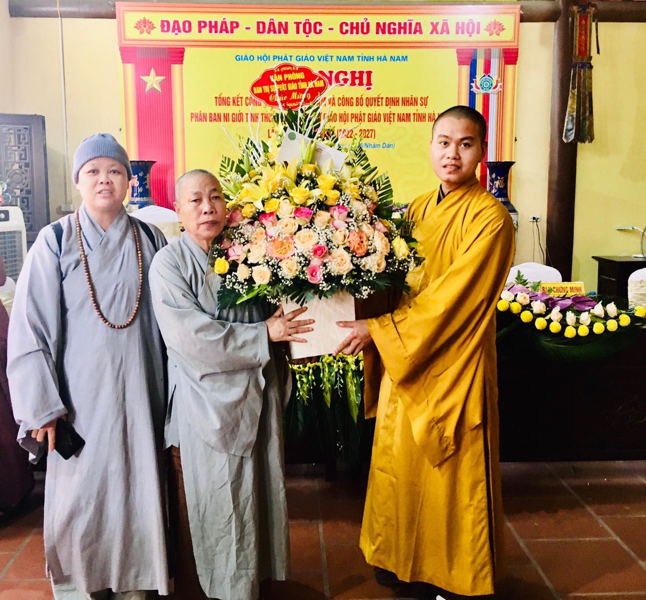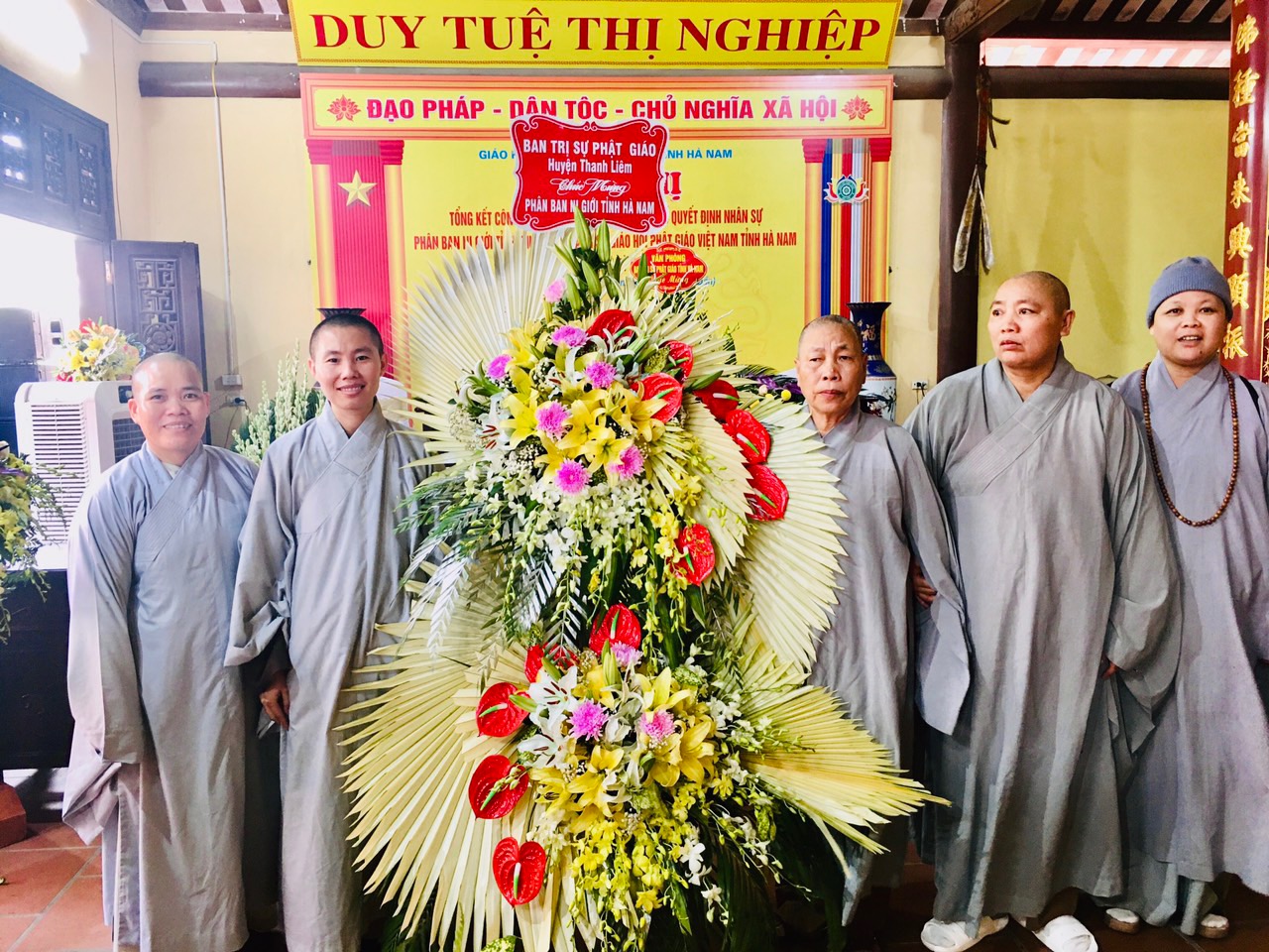 Buổi lễ cũng đón nhận nhiều lẵng hoa chúc mừng của chư tôn đức và đại diện chính quyền các cấp.