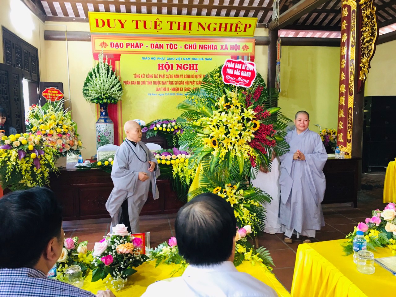 Tham dự chứng minh có: Hòa thượng Thích Thanh Quyết- Phó Chủ tịch Hội đồng Trị sự TW, Trưởng ban Trị sự Phật giáo tỉnh Hà Nam; Thượng Toạ Thích Thiện Hưởng- Uỷ viên Hội đồng Trị sự, Phó Trưởng Ban Thường Trực; Thượng Toạ Thích Thanh Viên; Thượng Toạ Thích Bản Lượng- Đồng Phó Trưởng ban; Ni Trưởng Thích Đàm Thuỷ- Nguyên Phó BTS GHPGVN tỉnh Hà Nam; Ni Trưởng Thích Đàm Bản – Trưởng Phân ban Ni giới PG tỉnh Hà Nam NK (2017-2022); Ni Sư Thích Đàm Đạt- Phó TB Trị sự kiêm phụ trách Ni giới PG tỉnh Hà Nam cùng chư Tôn đức Ni các tỉnh thành Bắc Giang, Quảng Ninh, Thanh Hoá, Nam Định,…và Chư tôn đức Tăng, Ni hành giả an cư, các huyện, thị xã, thành phố, đông đảo tín đồ Phật tử đồng tham dự lễ.