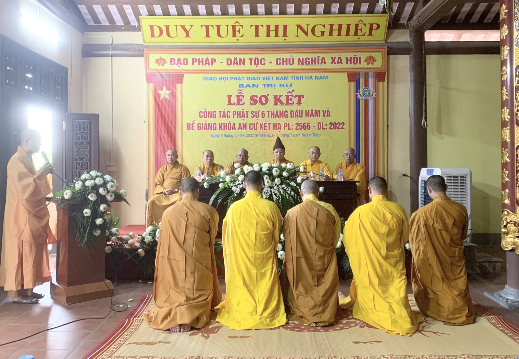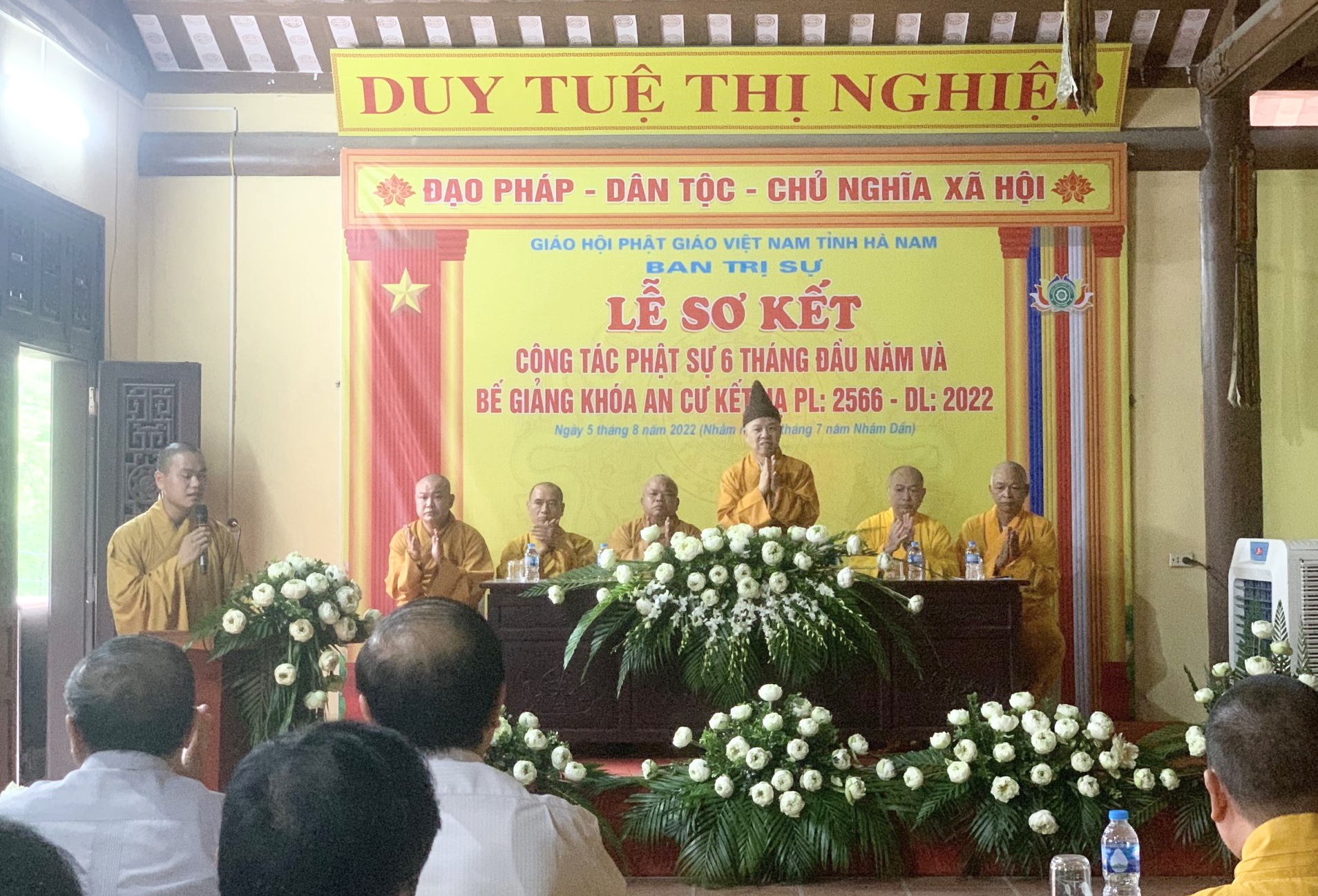 Sáng ngày 5/8/2022 ( 8/7/Nhâm Dần) Ban Trị sự Giáo hội Phật giáo tỉnh Hà Nam tổ chức lễ sơ kết 06 tháng đầu năm và Bế giảng khoá an cư kết hạ PL.2566 tại chùa Bầu, Phủ Lý.