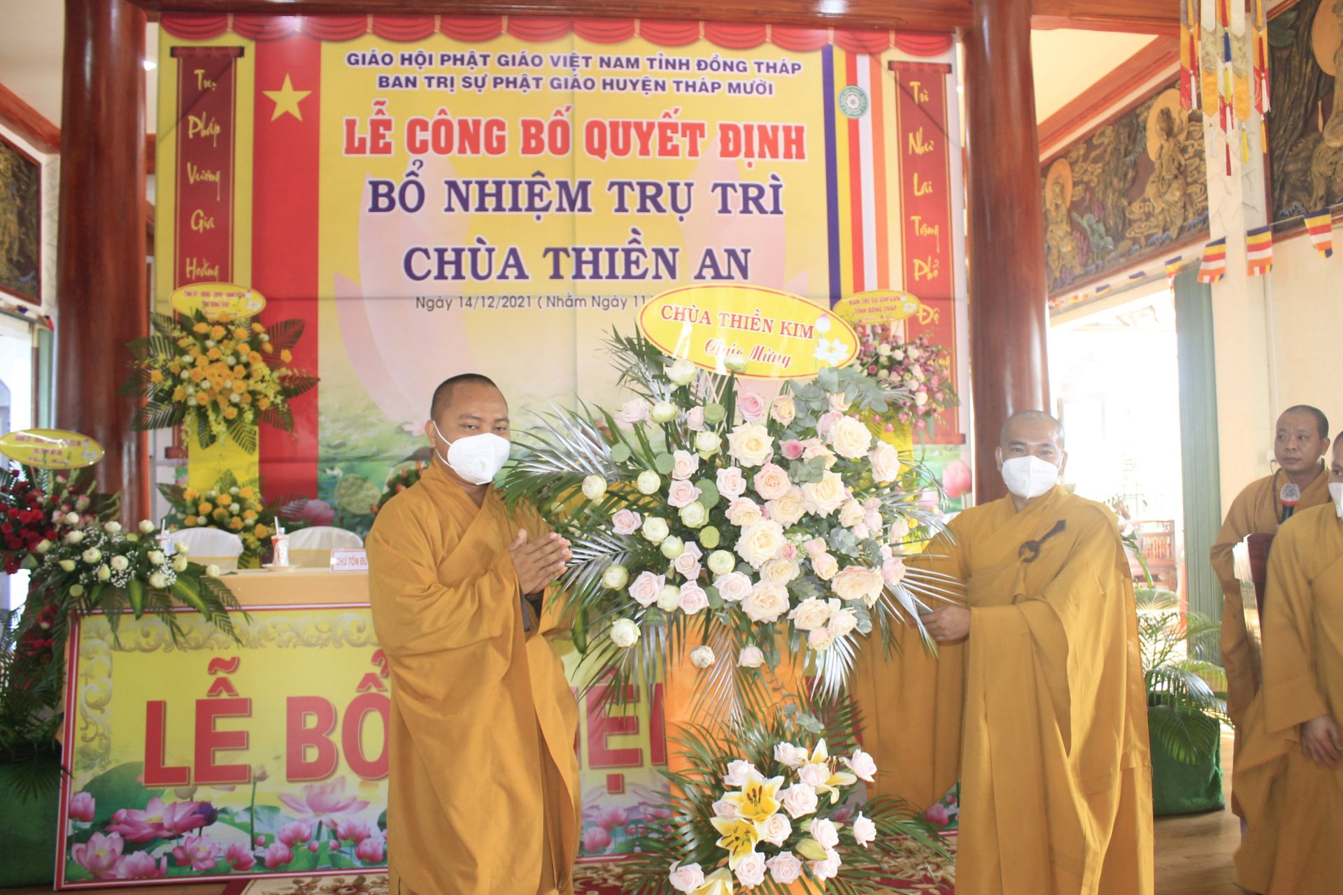 Đại đức Thích Đức Duyệt – Tân trưởng BTS Nhiệm kỳ IX đón nhận cờ luân lưu, đồng thời trao tặng hoa và quà tri ân những đóng góp trong công tác Phật sự của chư Tôn đức Tăng Ni thành viên BTS nhiệm kỳ VIII