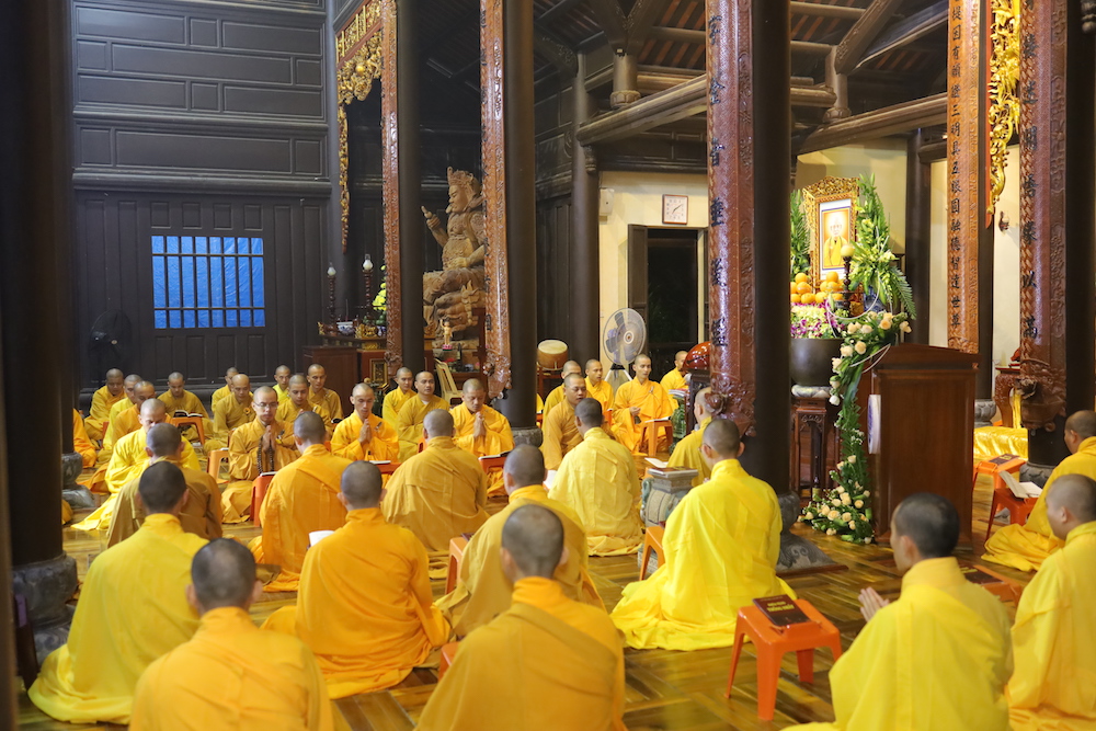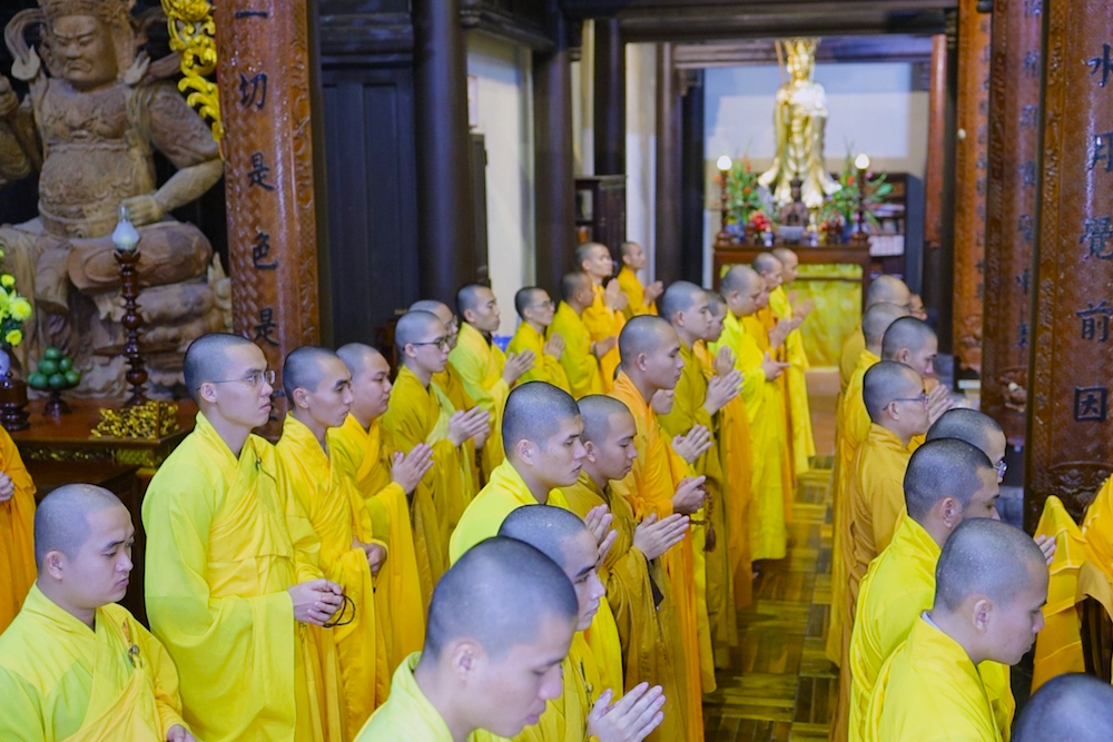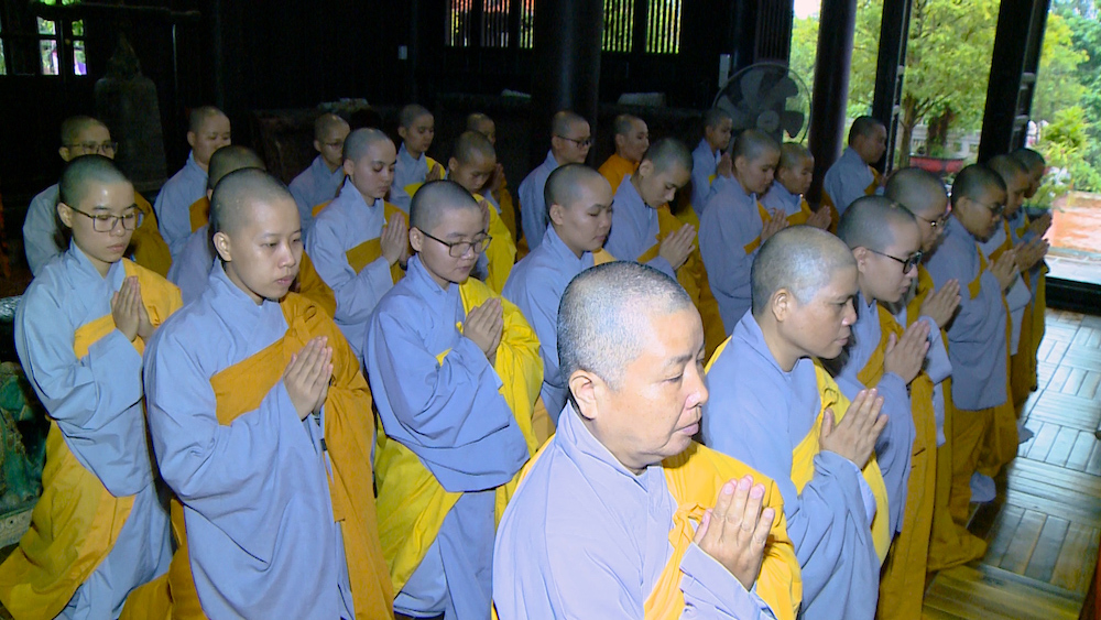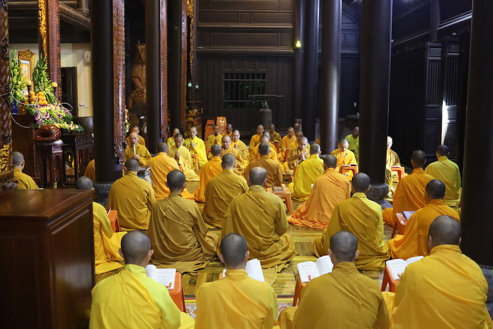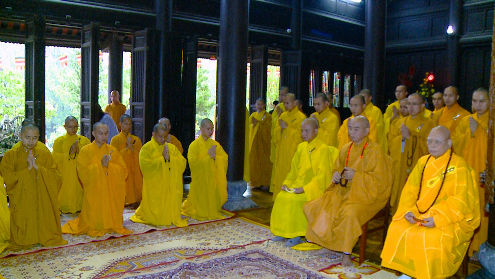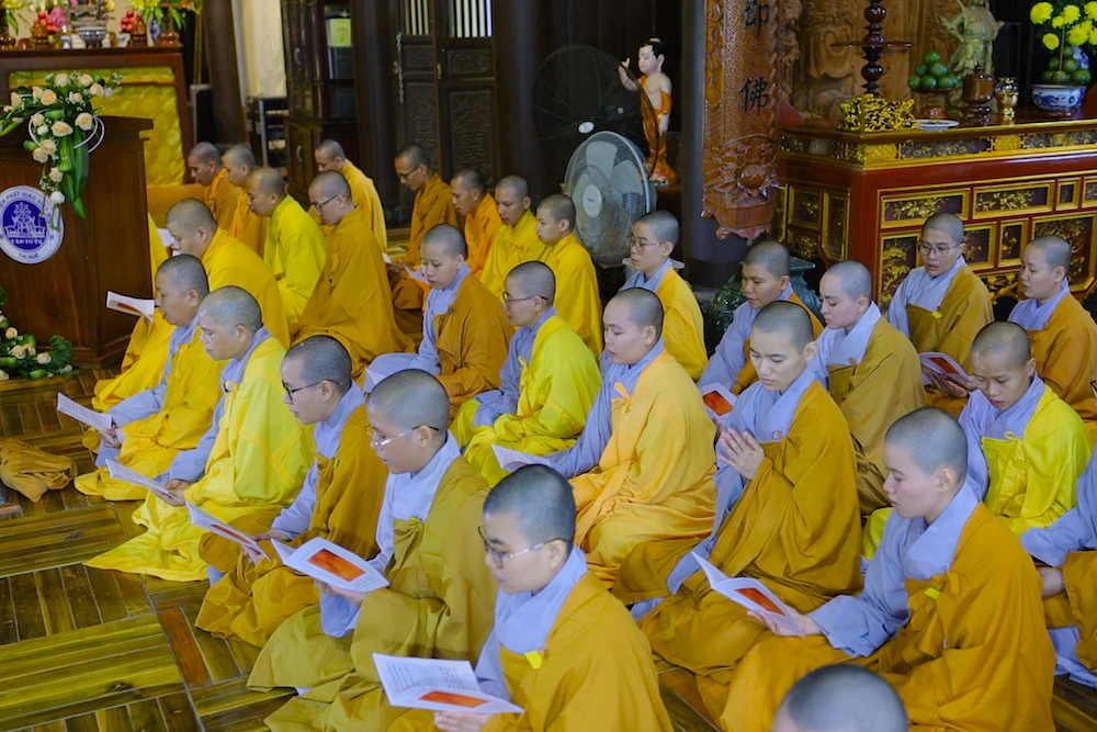 Sau lễ Tưởng niệm là thời khoá tụng kinh Di Giáo do TT. Thích Nguyên Thành – UV HĐTS, Phó Viện trưởng Học viện cùng chư Tôn đức Hội đồng Điều hành, quý Tăng Ni sinh viên trì tụng.