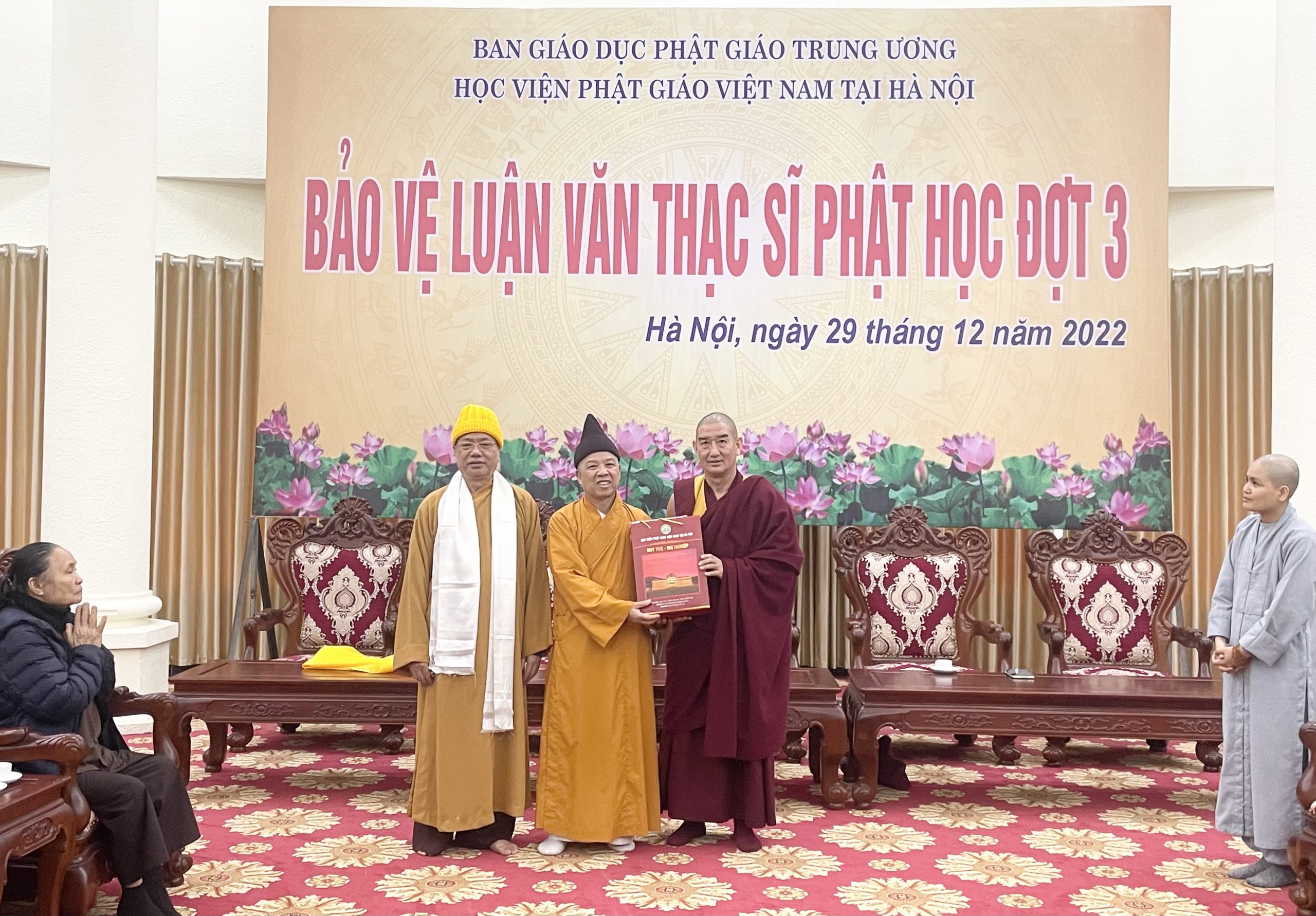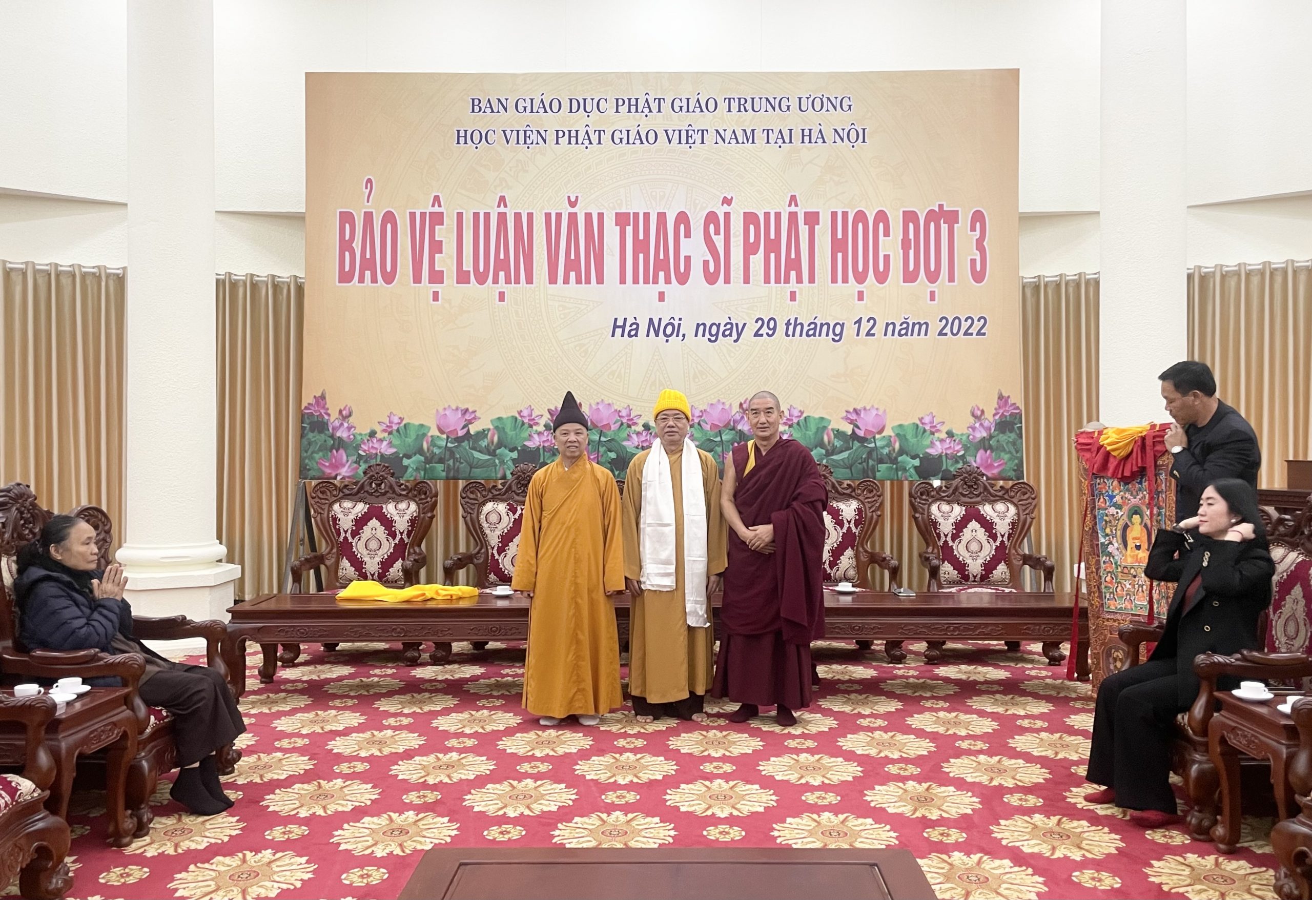 Đón tiếp đoàn tại Học viện Phật giáo VN tại Hà Nội có Hoà thượng Thích Thanh Đạt – Chủ tịch Hội đồng Khoa học Học viện; Hoà thượng Thích Thanh Quyết – Phó Chủ tịch Hội đồng Trị sự, Viện trưởng Học viện.